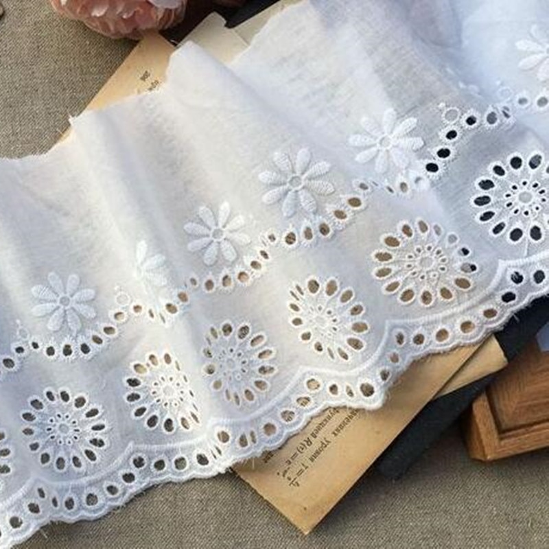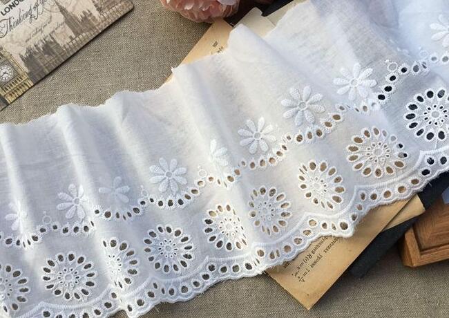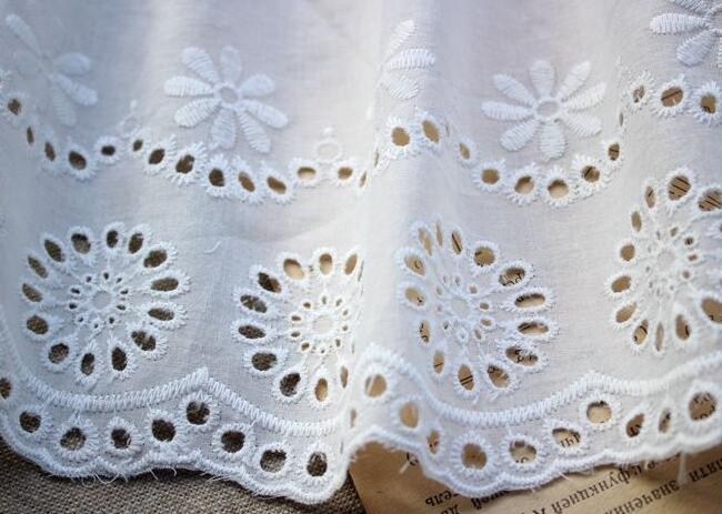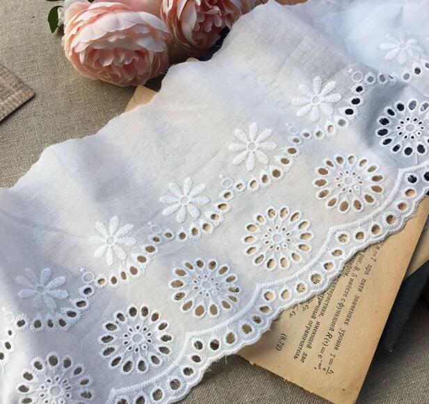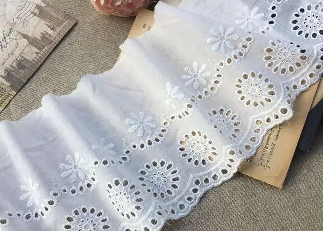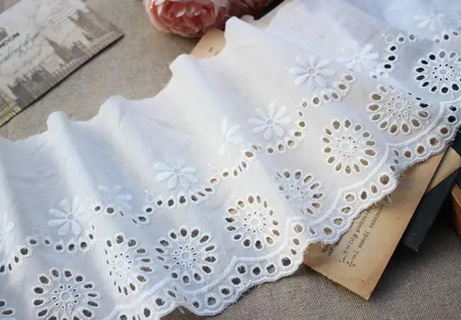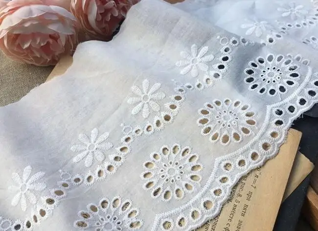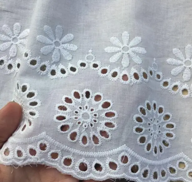 Кружевная ткань из хлопка с вышивкой, 14 см