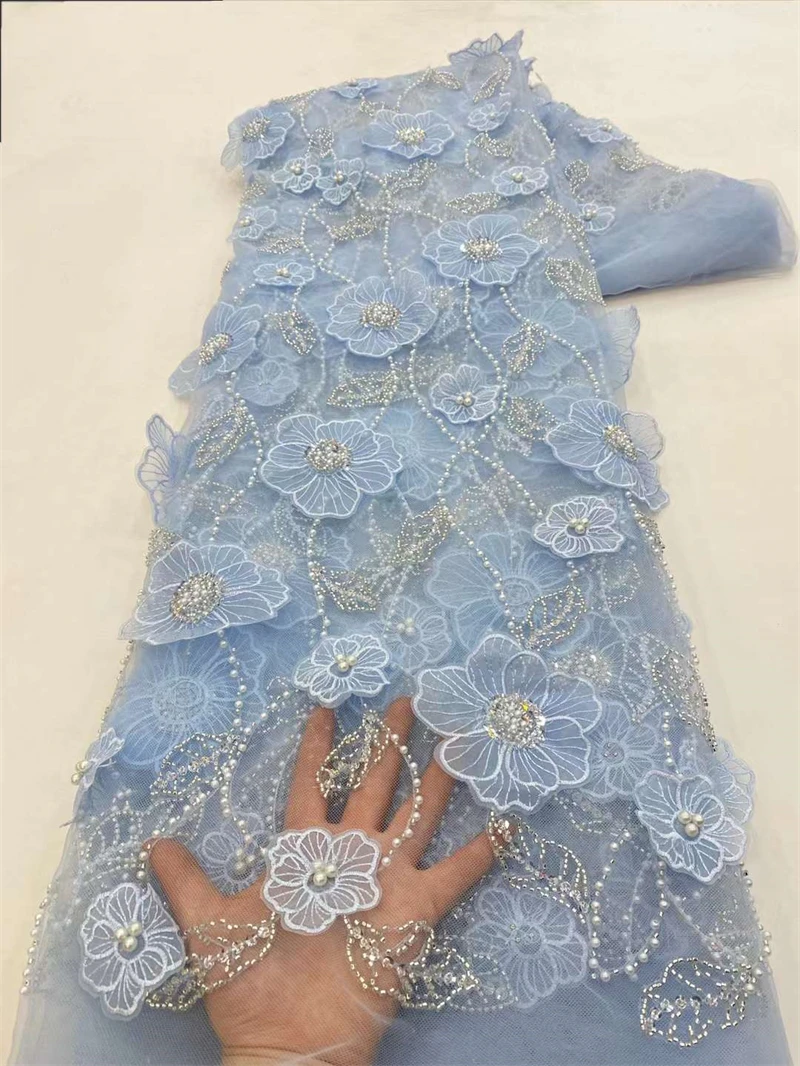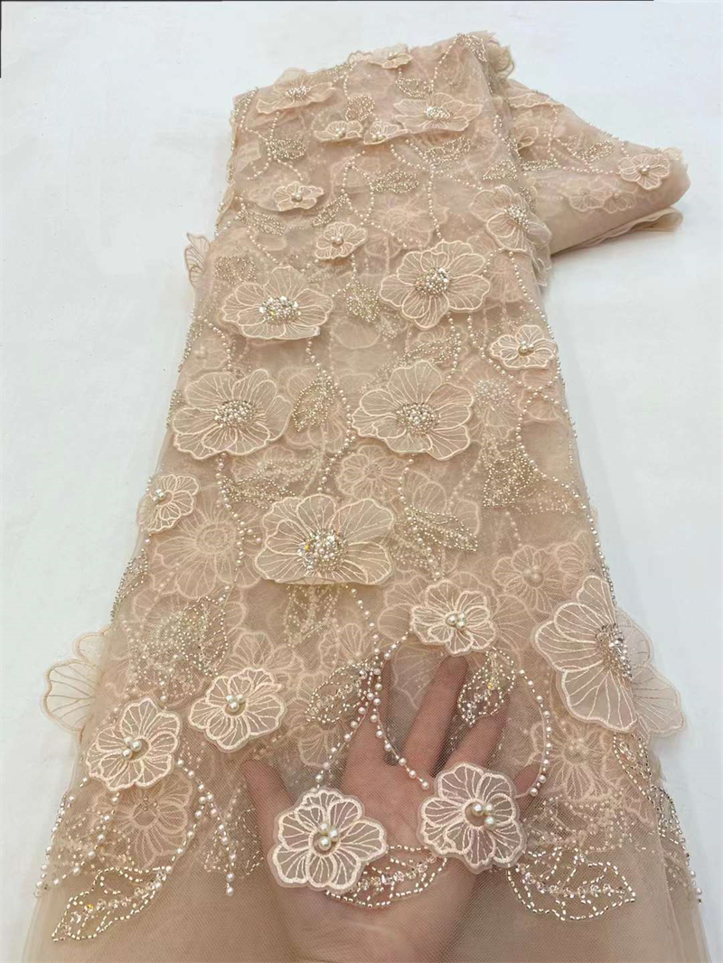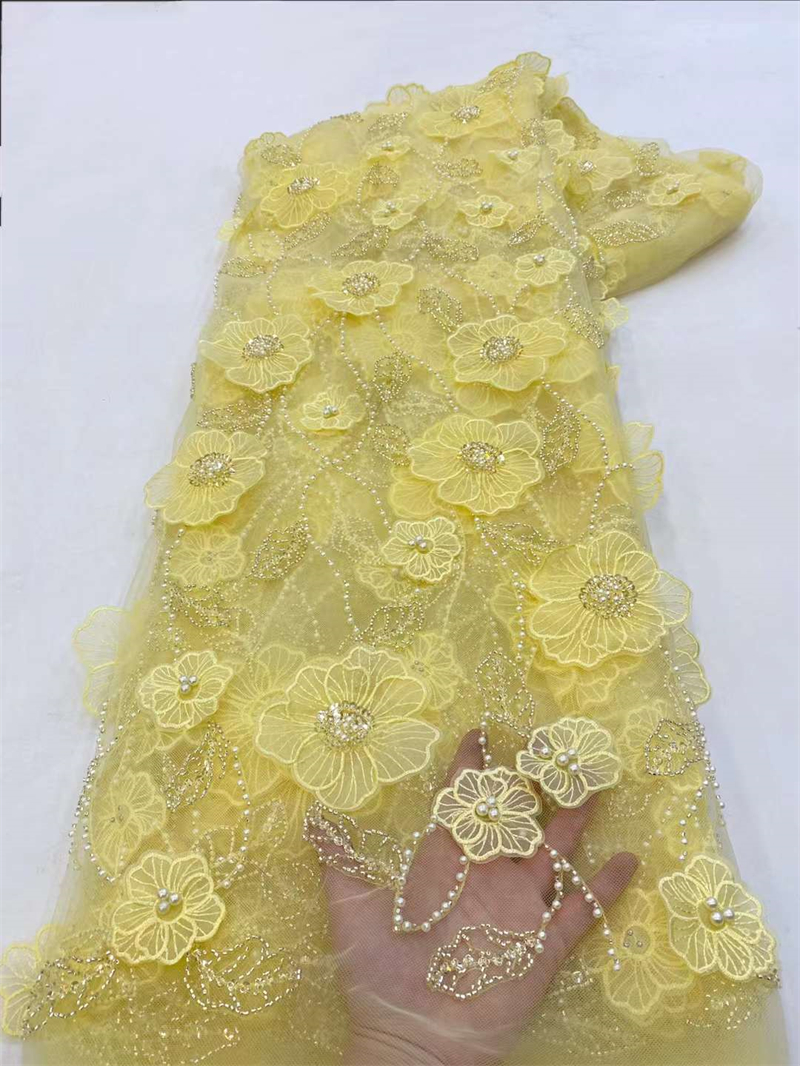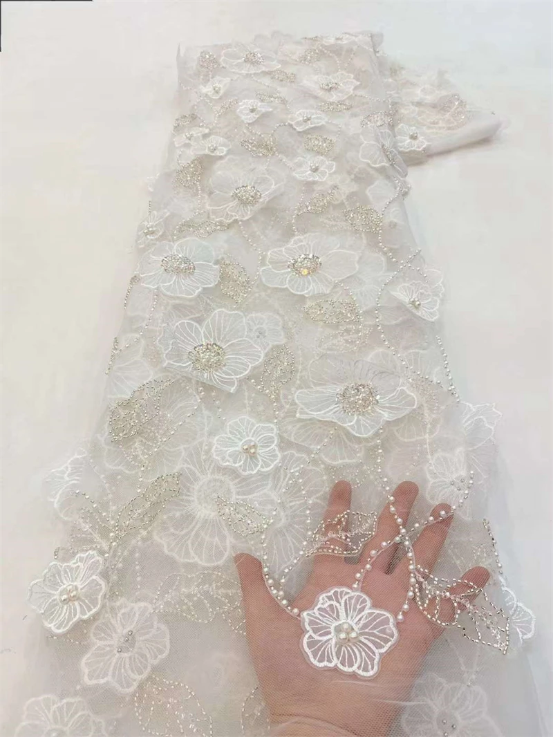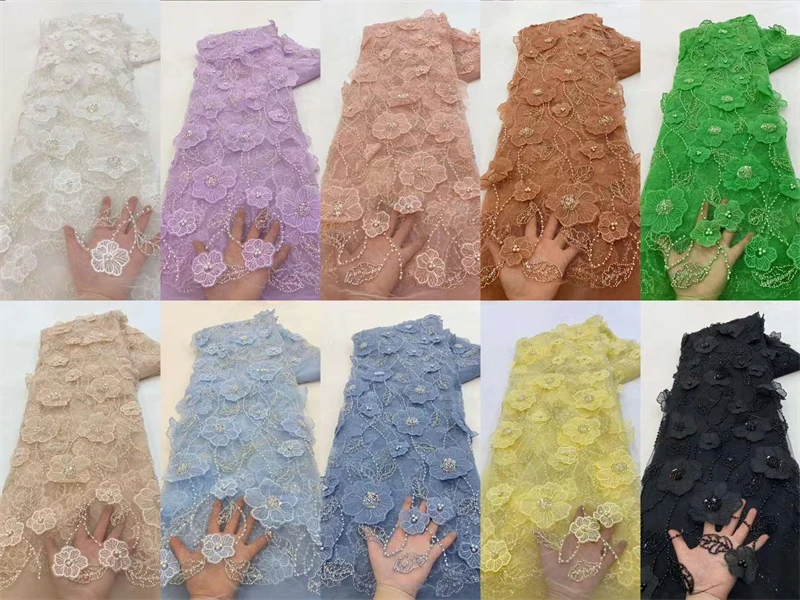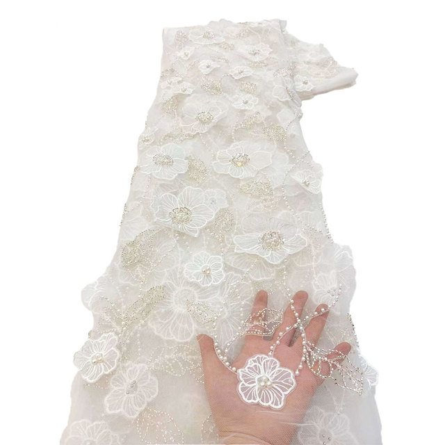 Кружевная ткань с бисером, 5 ярдов, цвет в ассортименте
