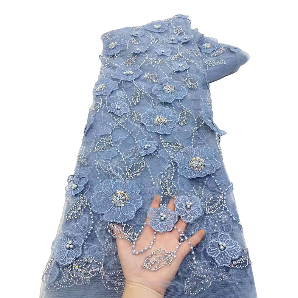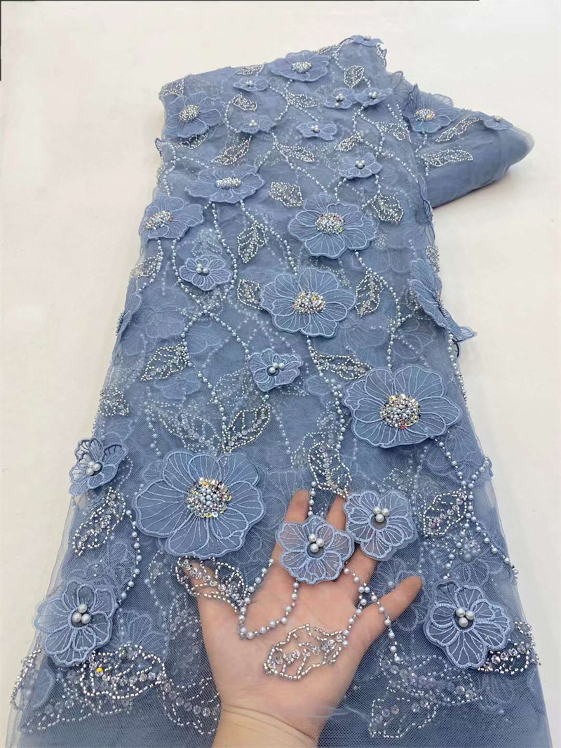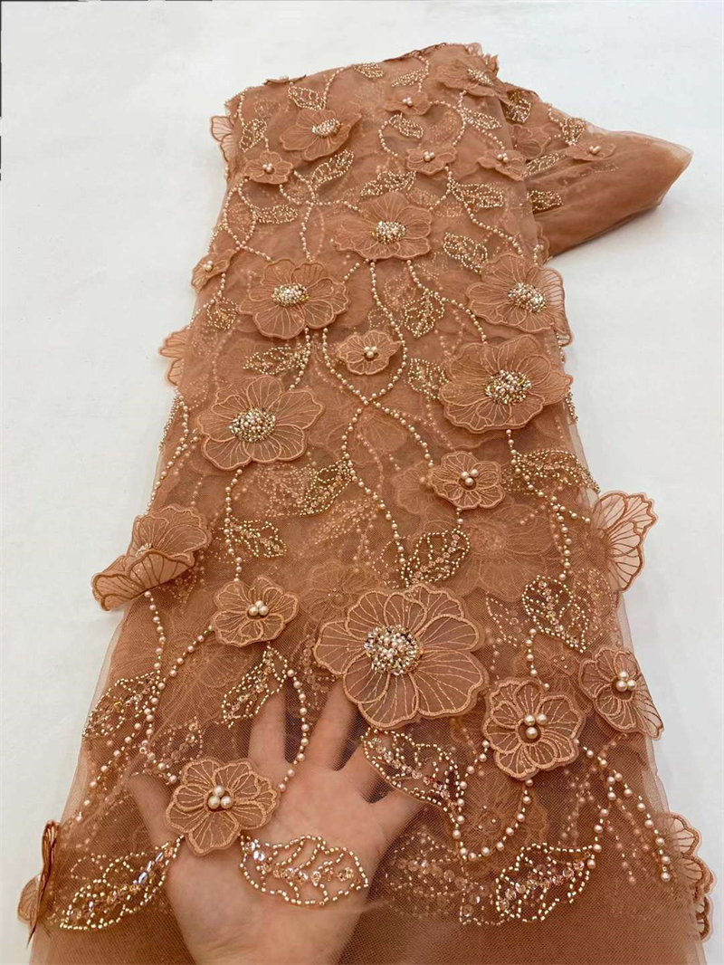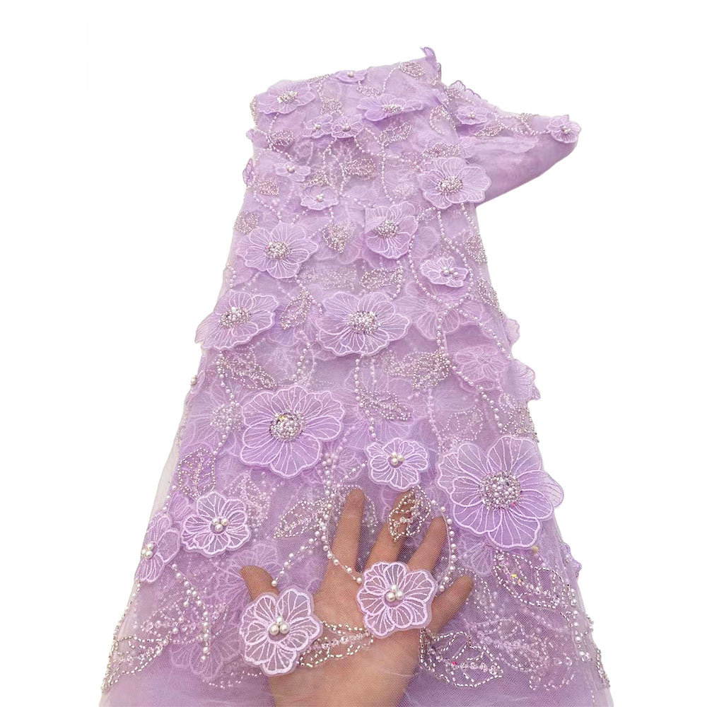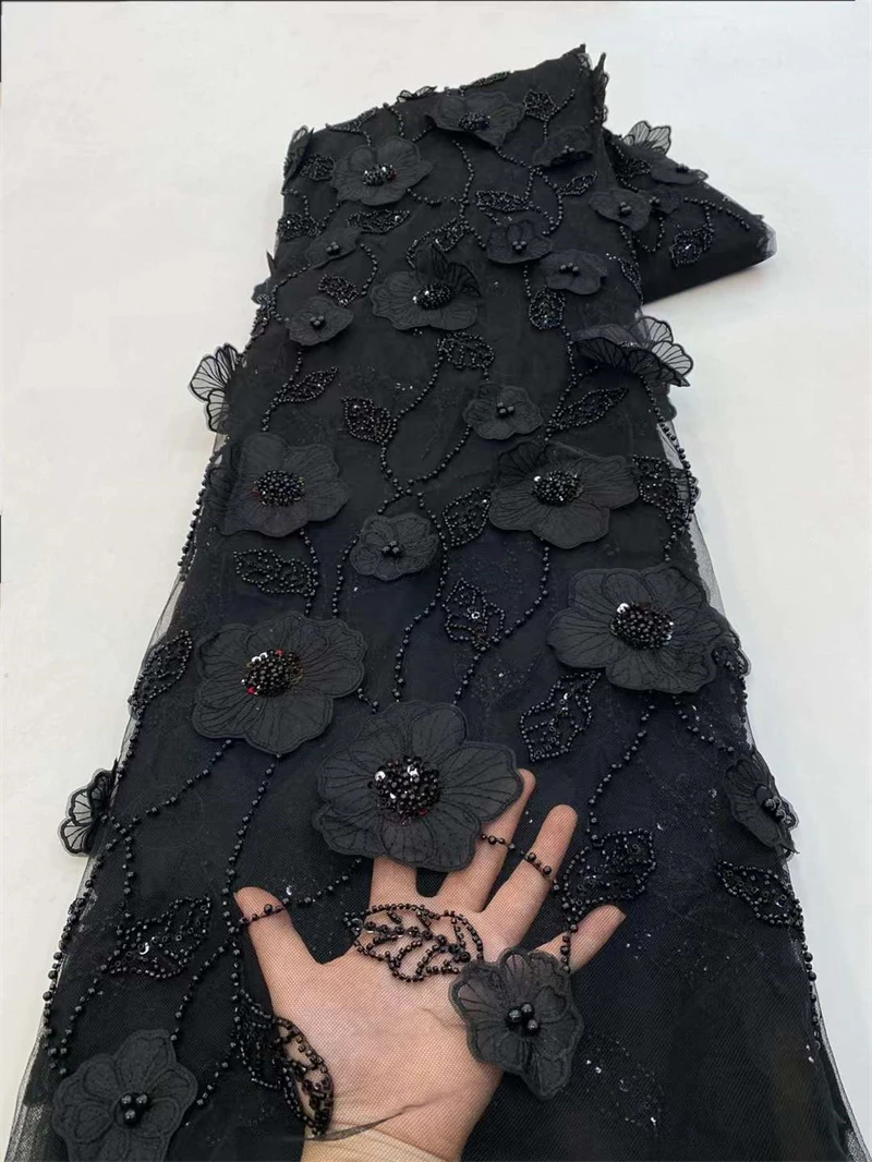 Кружевная ткань с бисером, 5 ярдов, цвет в ассортименте