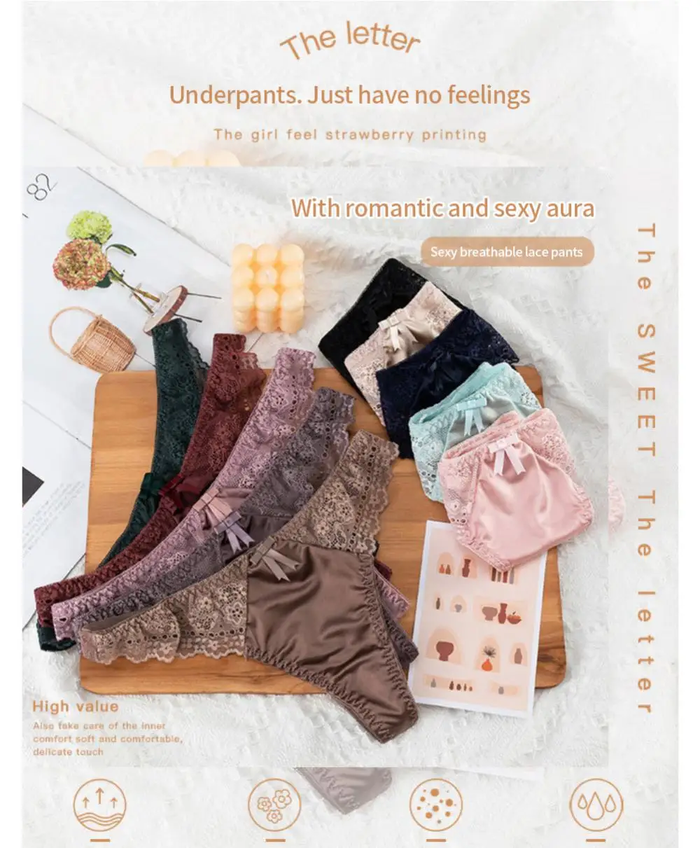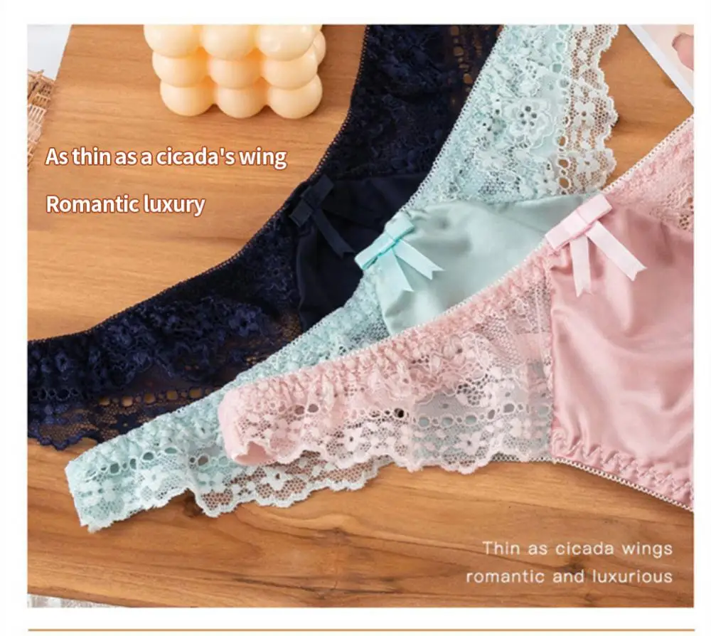 Кружевные Прозрачные сексуальные трусики, женские атласные легкие сексуальные стринги с низкой талией, бесшовное нижнее белье, женские трусики, нижнее белье