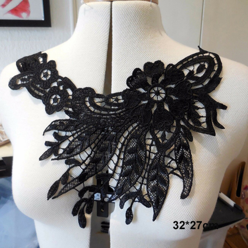 1 шт. черный цветок декольте Кружевная аппликация на воротник ткань для ткани одежда шитье на домашний текстиль для платья Скрапбукинг