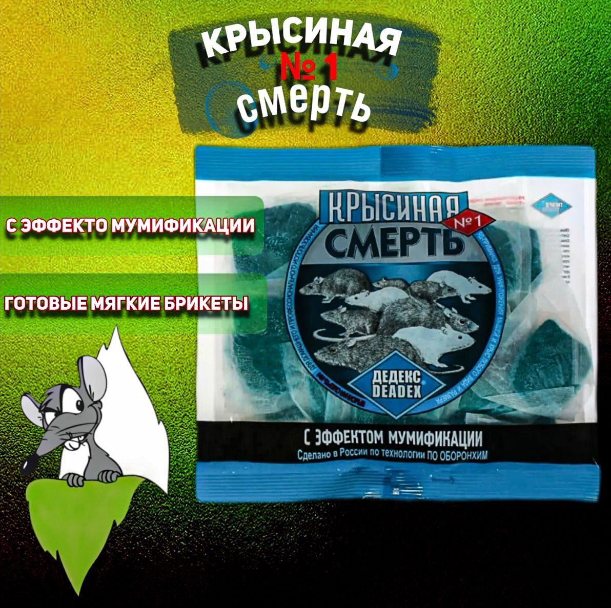 Крысиная смерть №1, Отрава для крыс и мышей 200 грамм, средство мумифицирующее, тесто-брикет