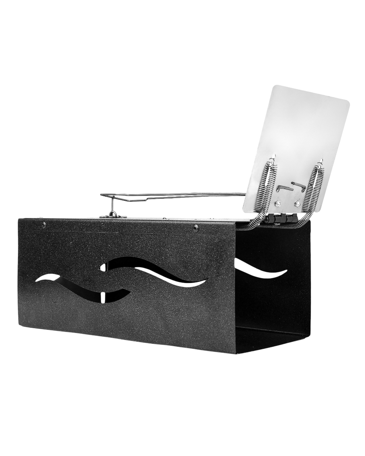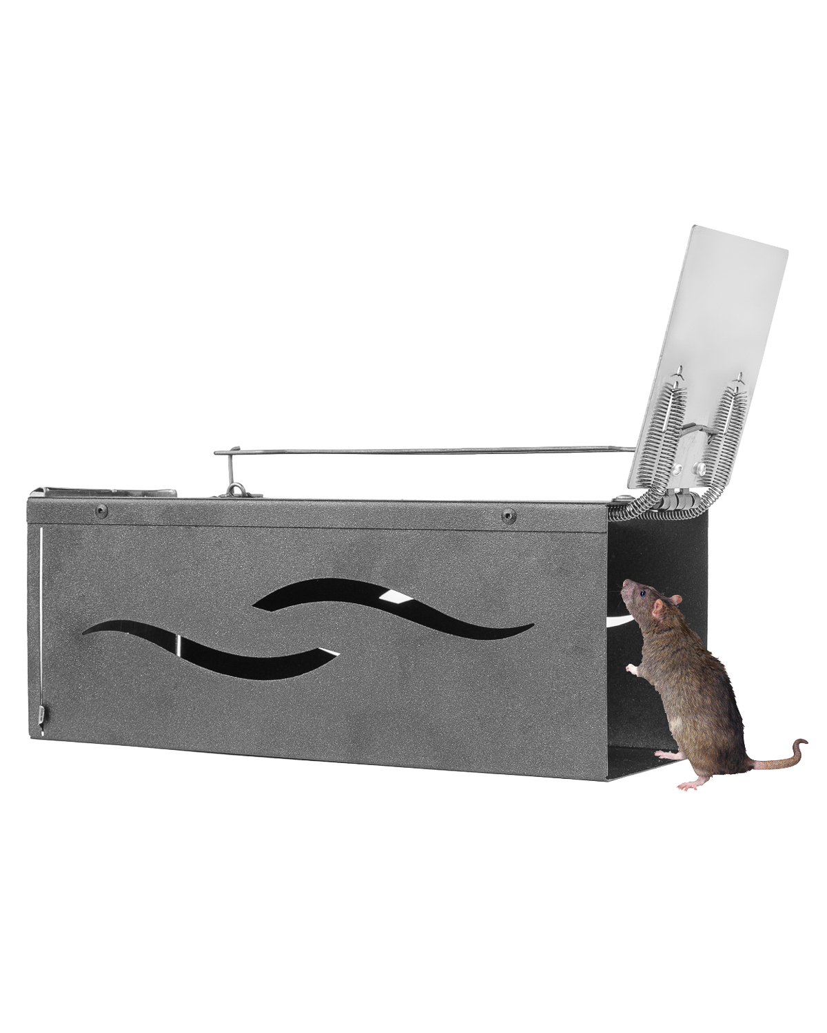 Живоловка Гроза изготовлена из оцинкованной листовой стали. Ловушка закрывается дверкой под действием двух мощных пружин.
