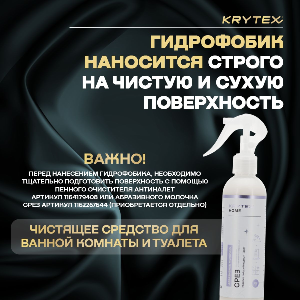 Описание: KRYTEX HOME ГИДРОФОБИК Защитное покрытие длительного действия для душевых кабин из пластика. Создает устойчивое, долгоиграющее водоотталкивающее покрытие.