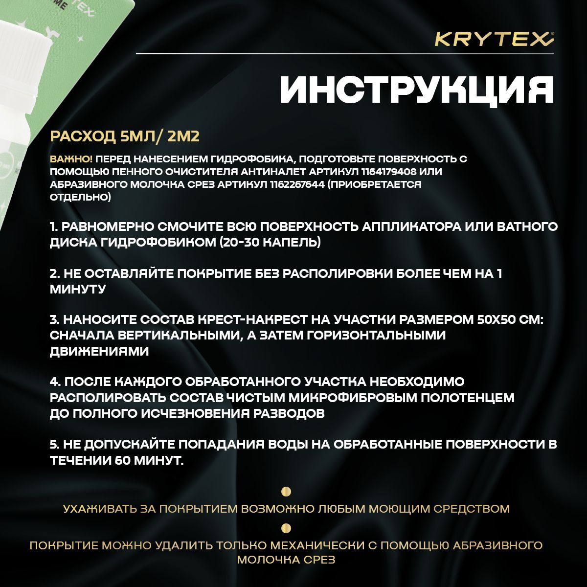 • После каждого обработанного участка необходимо располировать состав чистым микрофибровым полотенцем до отсутствия разводов.