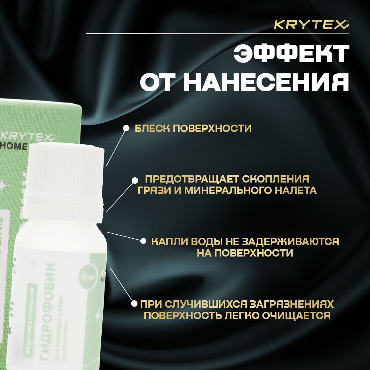 KRYTEX HOME ГИДРОФОБИК Для душевых кабин из пластика Защитное покрытие длительного действия ,Создает устойчивое, долгоиграющее водоотталкивающее покрытие 10 мл