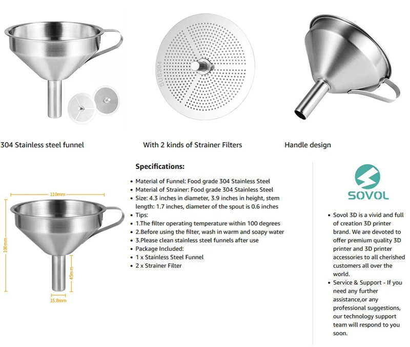 Кухонная масляная Воронка SOVOL 304 с двойным фильтром из нержавеющей стали для жидкости, 3D смоляная Воронка с фильтром для SLA/DLP/LCD УФ 3D печати