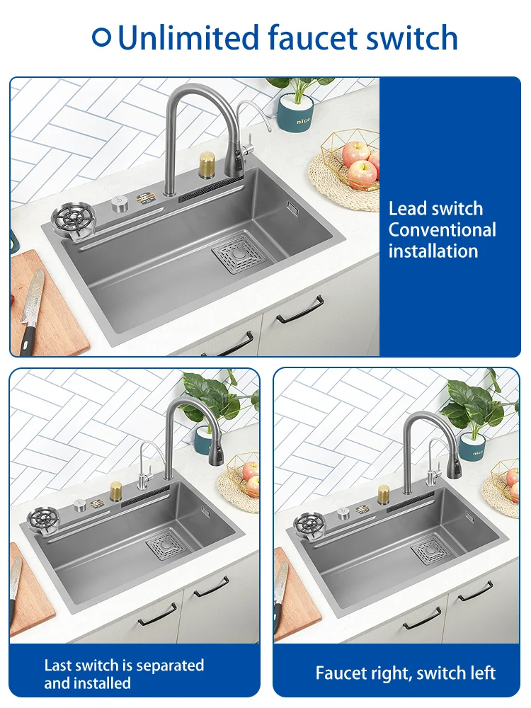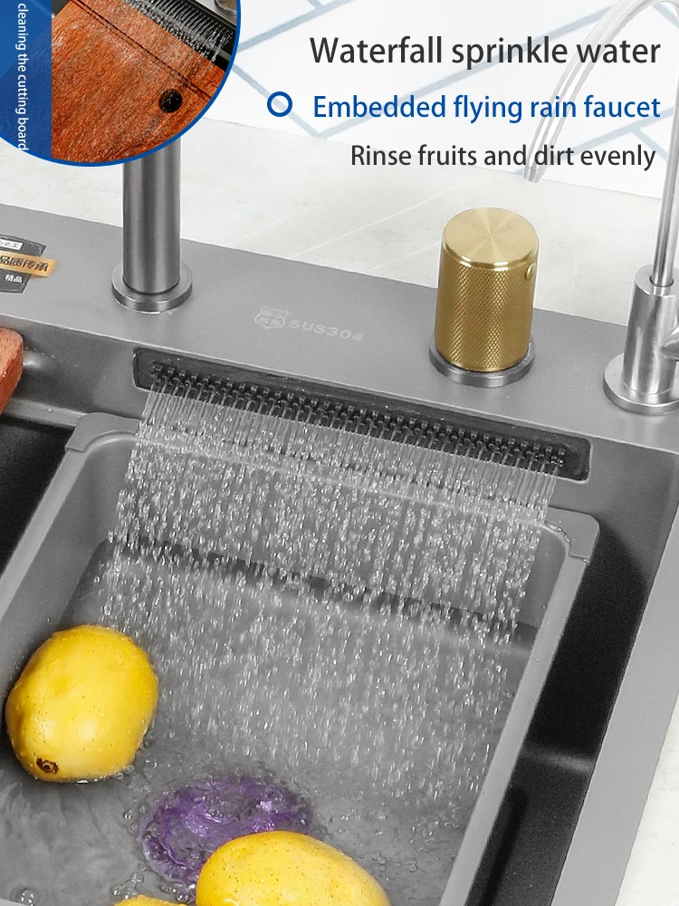 Кухонная раковина из нержавеющей стали 304, большой однослойный многофункциональный сенсорный смеситель водопад для обновления кухни