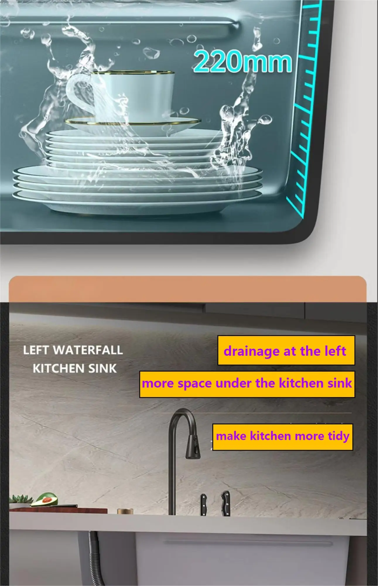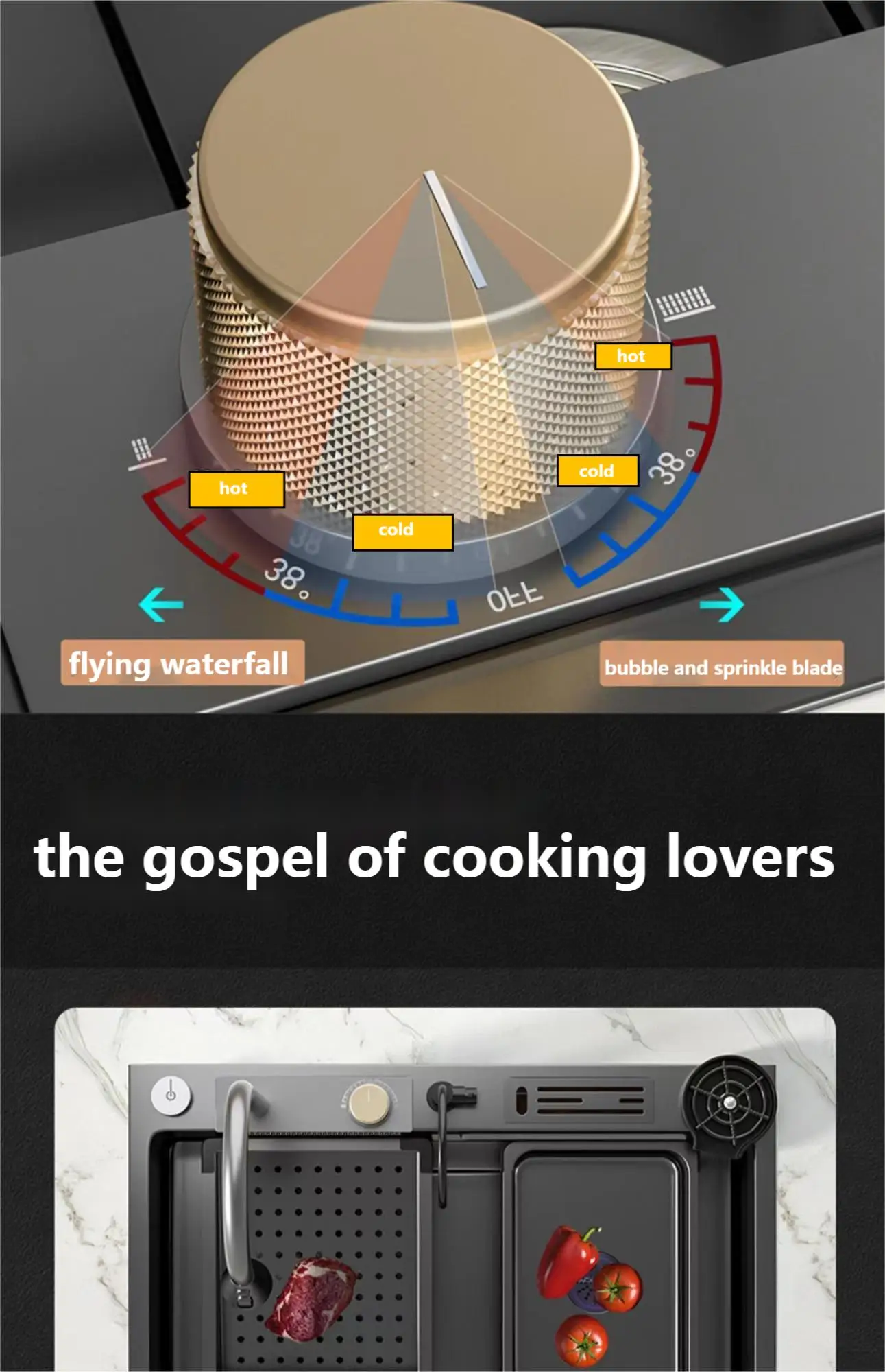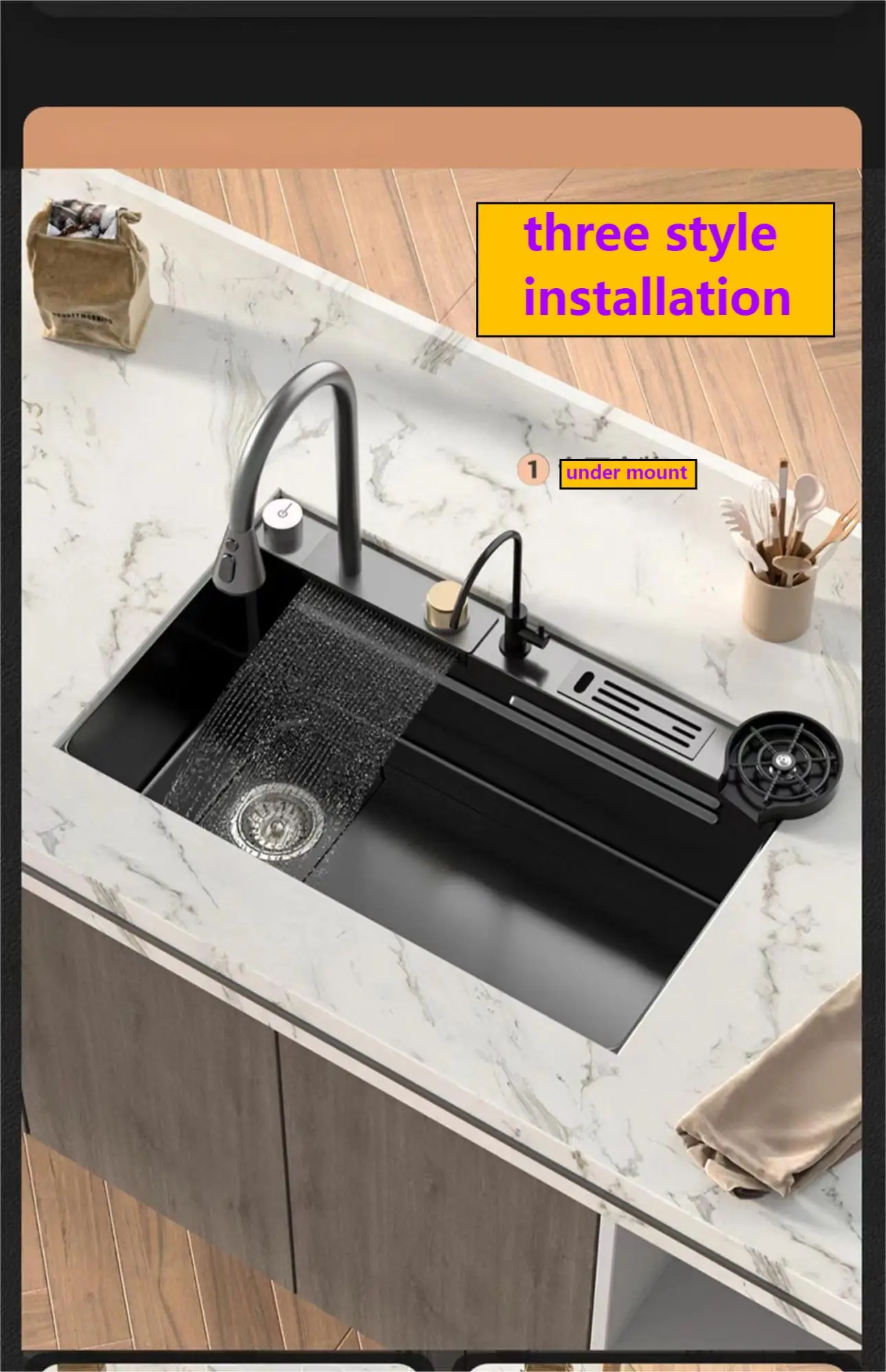 Кухонная раковина из нержавеющей стали Nano 304 с летающим водопадом и цифровым дисплеем