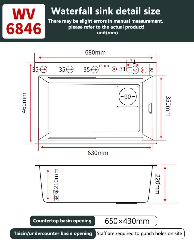 Высота мойки: 22 см