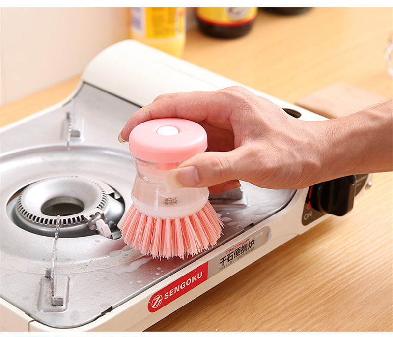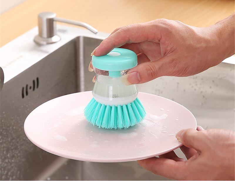 Отличный ручной Посудомоечная щетка, которая распределяет жидкость для мытья посуды, когда вы моете посуду.