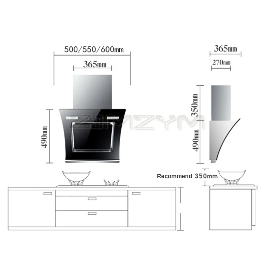 Кухонная всасывающая вытяжка 50/60 см, боковое всасывание, 220 В