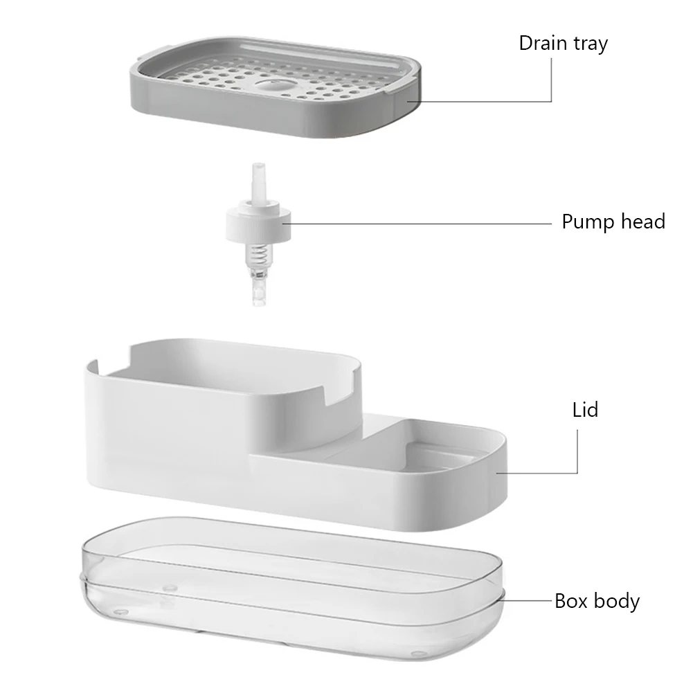 ЗАЩИТА УТЕЧКИ И ЛЕГКАЯ ЧИСТКА: дозатор для кухонного мыла с держателем для губки может идеально заменить традиционный дозатор жидкости для мытья посуды. Нижняя часть стойки для лотков полая и герметичная, что удобно для хранения остаточной жидкости. При чистке необходимо только вынуть полку лотка и вылить жидкость внутрь, чтобы очистить, очень удобно, это идеальный подарок для ваших друзей или семьи.