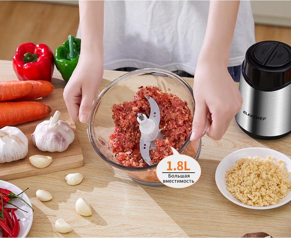 Кухонный комбайн BioloMix от ELEKCHEF л со стеклянной чашей, измельчитель, двухскоростная мясорубка для детского питания, овощей, лука, чеснока