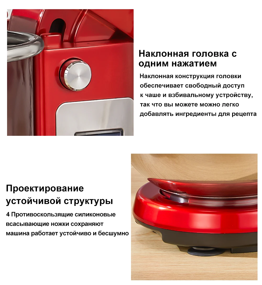 【Четкий светодиодный дисплей и дизайн наклонной головки】Смеситель для теста BioloMix оснащен цифровым дисплеем, показывающим время работы, что позволяет вам заниматься другими делами одновременно с работой миксера, что эффективно экономит ваше время. Наш многофункциональный миксер для выпечки также имеет встроенную защиту от перегрева и автоматически отключает машину при перегреве двигателя. Конструкция наклонной головки не только позволяет удобно переключать аксессуары, но и легко снимает чашу.