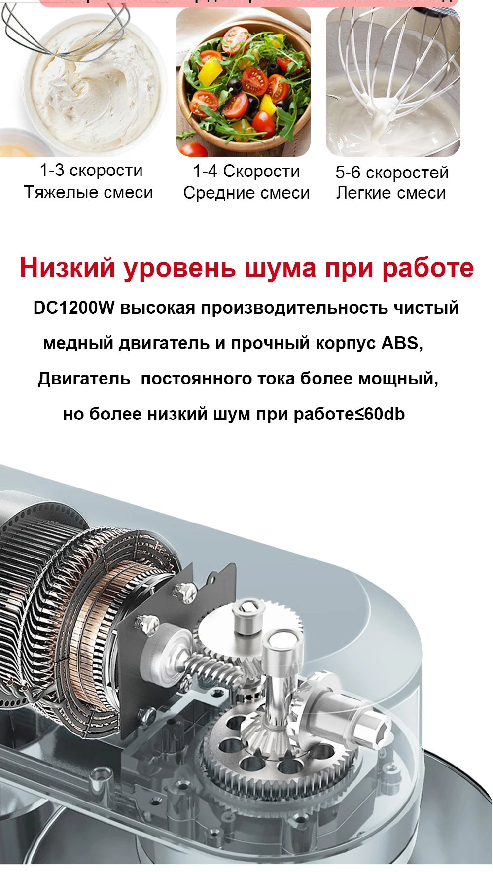 Кухонный миксер BioloMix, блендер, тихий двигатель, венчик для взбивания крема и яиц, взбиватель теста с кнутом, 6 скоростей, 1200 Вт, 6 л, DC