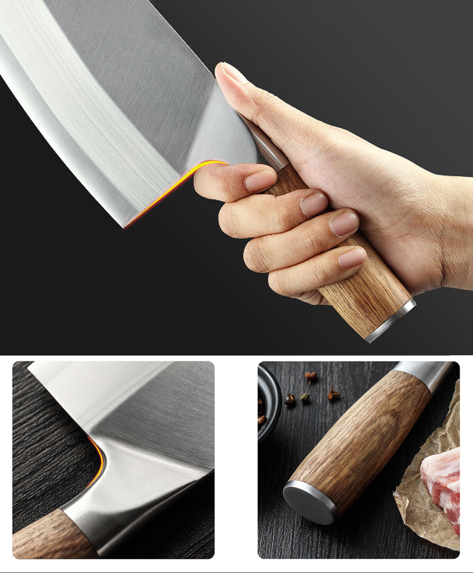 Кухонный нож Мясницкий шеф-повара, нож из нержавеющей стали, острый нож для нарезки, измельчения мяса, китайский мясницкий нож с деревянной ручкой