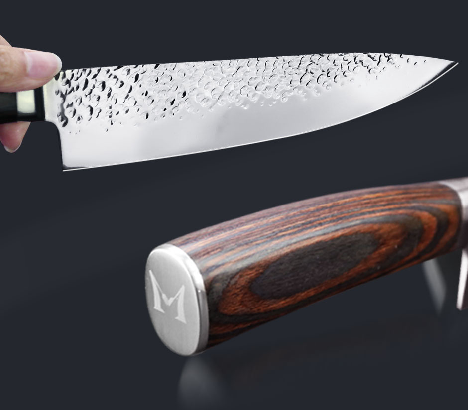 5. Дизайн: дизайн лезвия с ударным рисунком + деревянная ручка Pakka