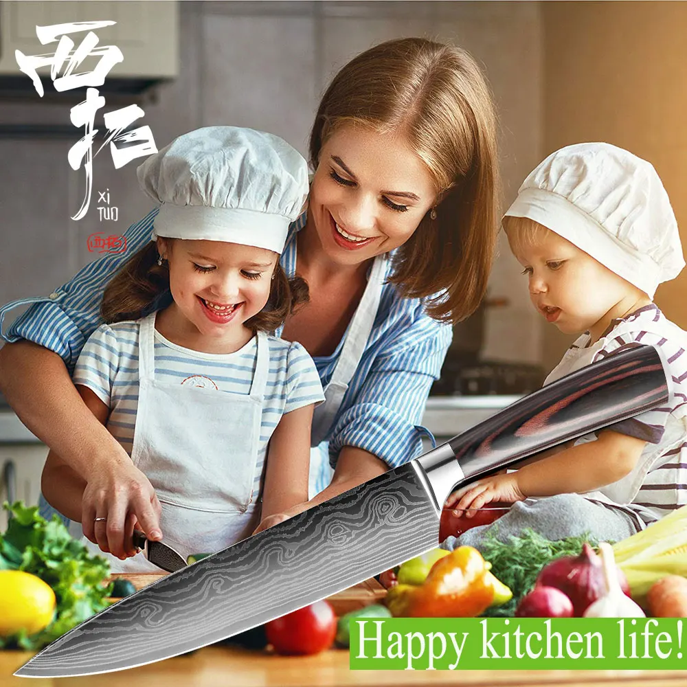 Кухонный нож XITUO для шеф-повара, японский резец сантоку с лазерным узором, дамасский резак для мяса, острый нож для нарезки фруктов