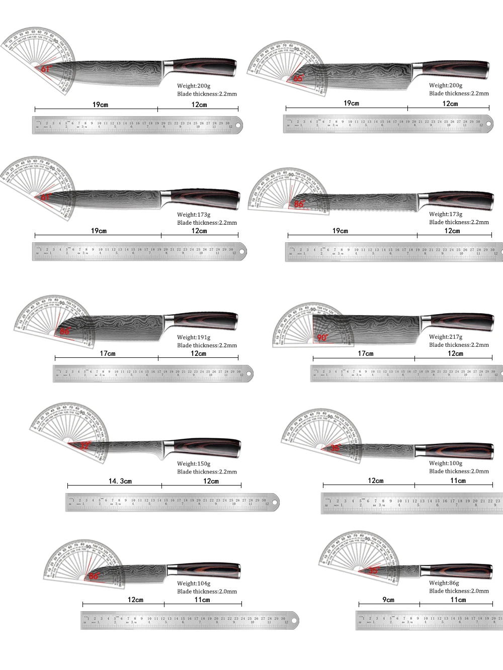 Мы в основном продаем высококачественные кухонные ножи и профессиональные инструменты для повара, основные материалы ножей-японская Дамасская сталь, хромированная сталь и т. д.