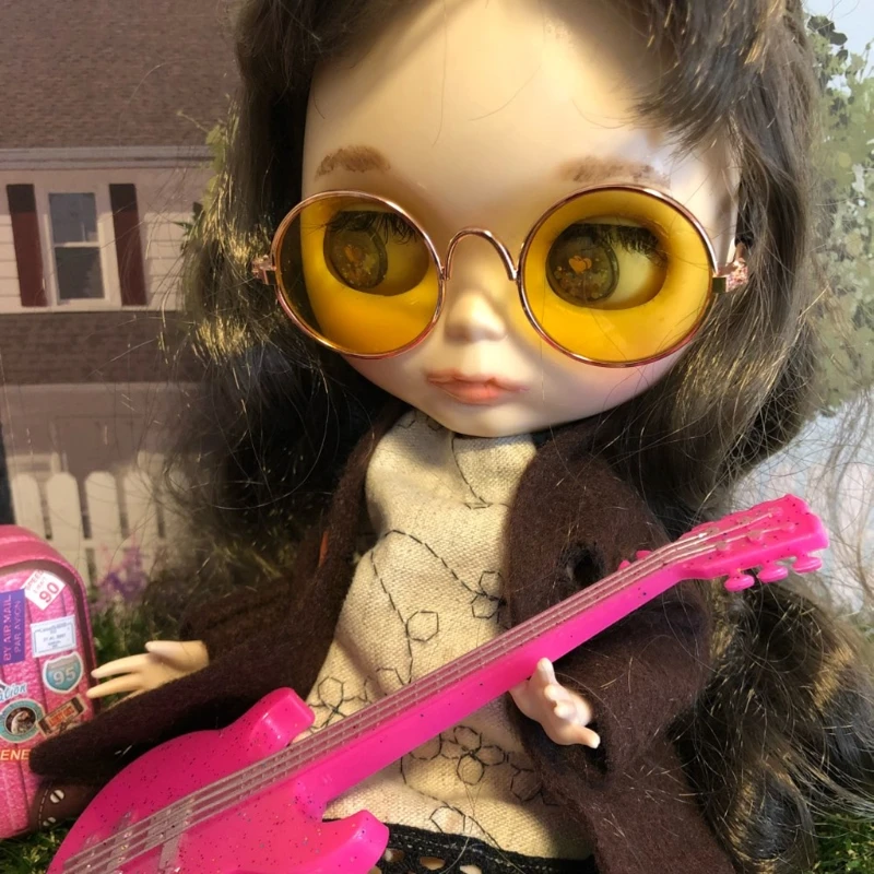 Возьмите свою любимую куклу или питомца с очками и сделайте крутое изображение.