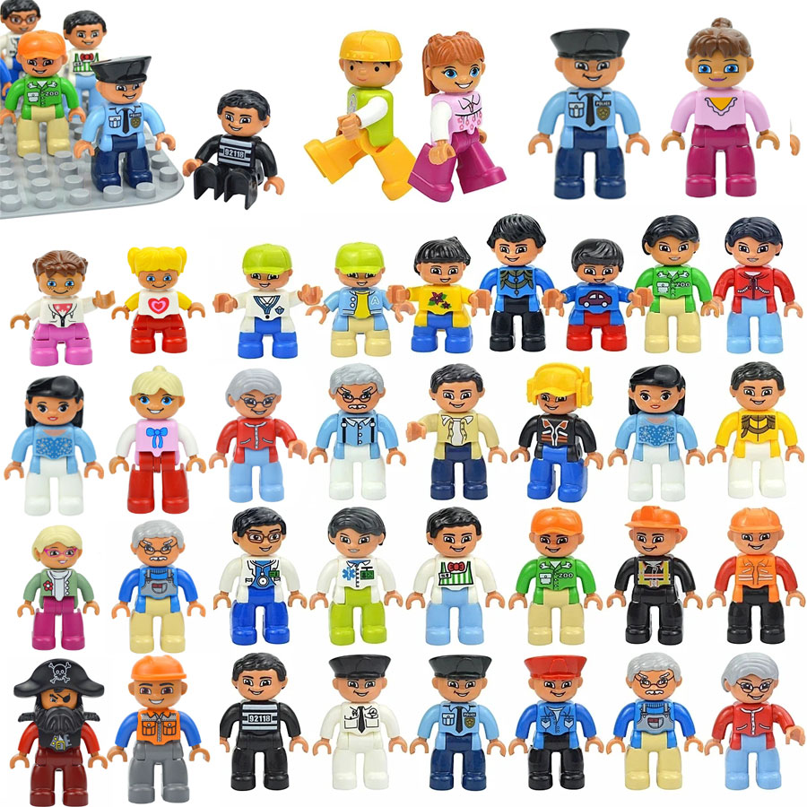 Кукольные фигурки большого размера, конструктор для семьи, фермера, пиратского работника, врача, полицейского, совместимы с Duploes