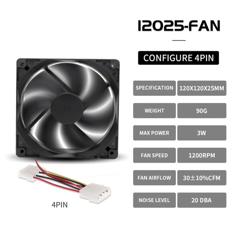 Посылка включает в себя: 1 охлаждающий вентилятор 12025
