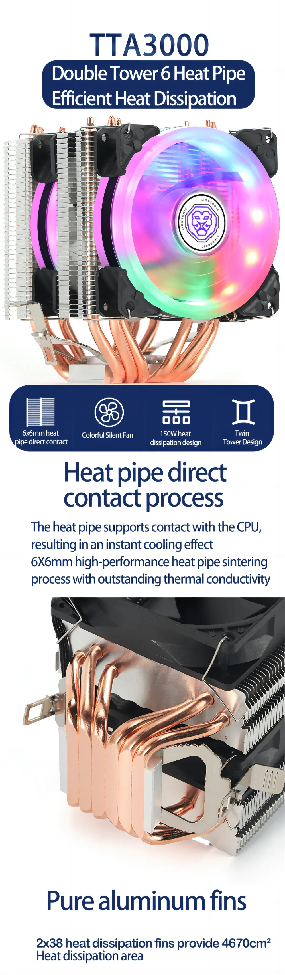 Совместимость и обновление освещения рассеивание тепла до 150 Вт, полностью применимо к полностью совместимым процессорам INTEL, AMD полной серии для удовлетворения потребностей от легкого до умеренного разгона, высокой стоимости.
