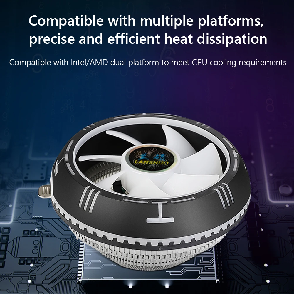 Воздушный кулер для процессора LANSHUO Rainbow RGB с 90-миллиметровым бесшумным вентилятором Алюминиевые ребра Низкопрофильный кулер для процессора AMD AM4 AM3 + AM3 AM2 + AM2 FM1 X79 X99 LGA 775 1150 1151 1155 1156 1366 2011