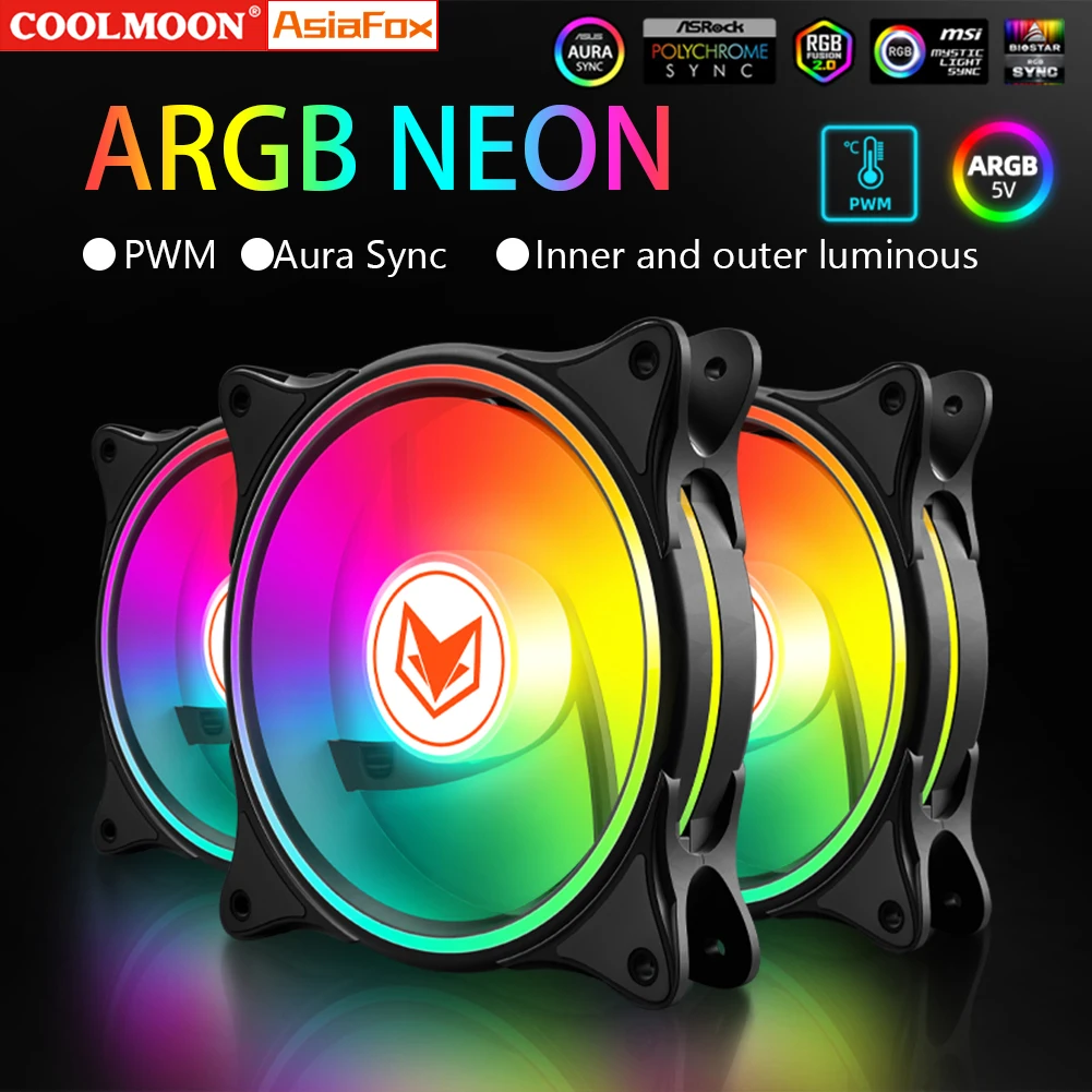 Кулер охлаждения COOLMOON 120 мм, 5 В, 3 контакта, Вращающийся вентилятор шасси с синхронизацией подсветки Aura, кулер для чехла ПК, 4 контакта, ШИМ, Гидравлические аксессуары для компьютера