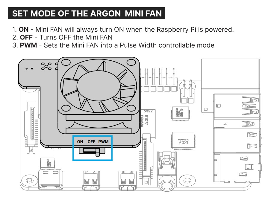 3. PWM-устанавливает мини-вентилятор в режим регулировки ширины импульса.