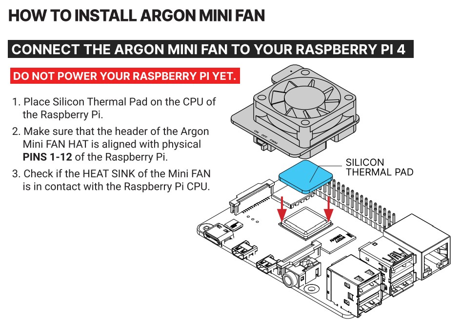 3. Проверьте, находится ли радиатор мини-вентилятора в контакте с процессором Raspberry Pi.