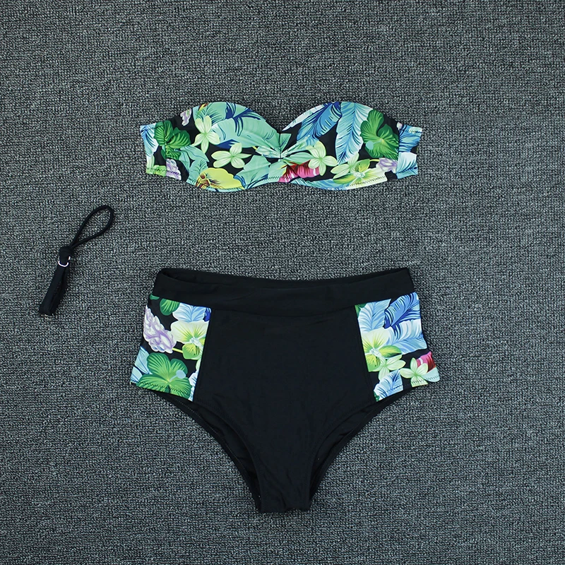 Купальник-бикини из двух предметов, женский купальник 2023, комплект бикини с высокой талией и цветочным принтом, привлекательный купальный костюм на шнуровке, женская пляжная одежда