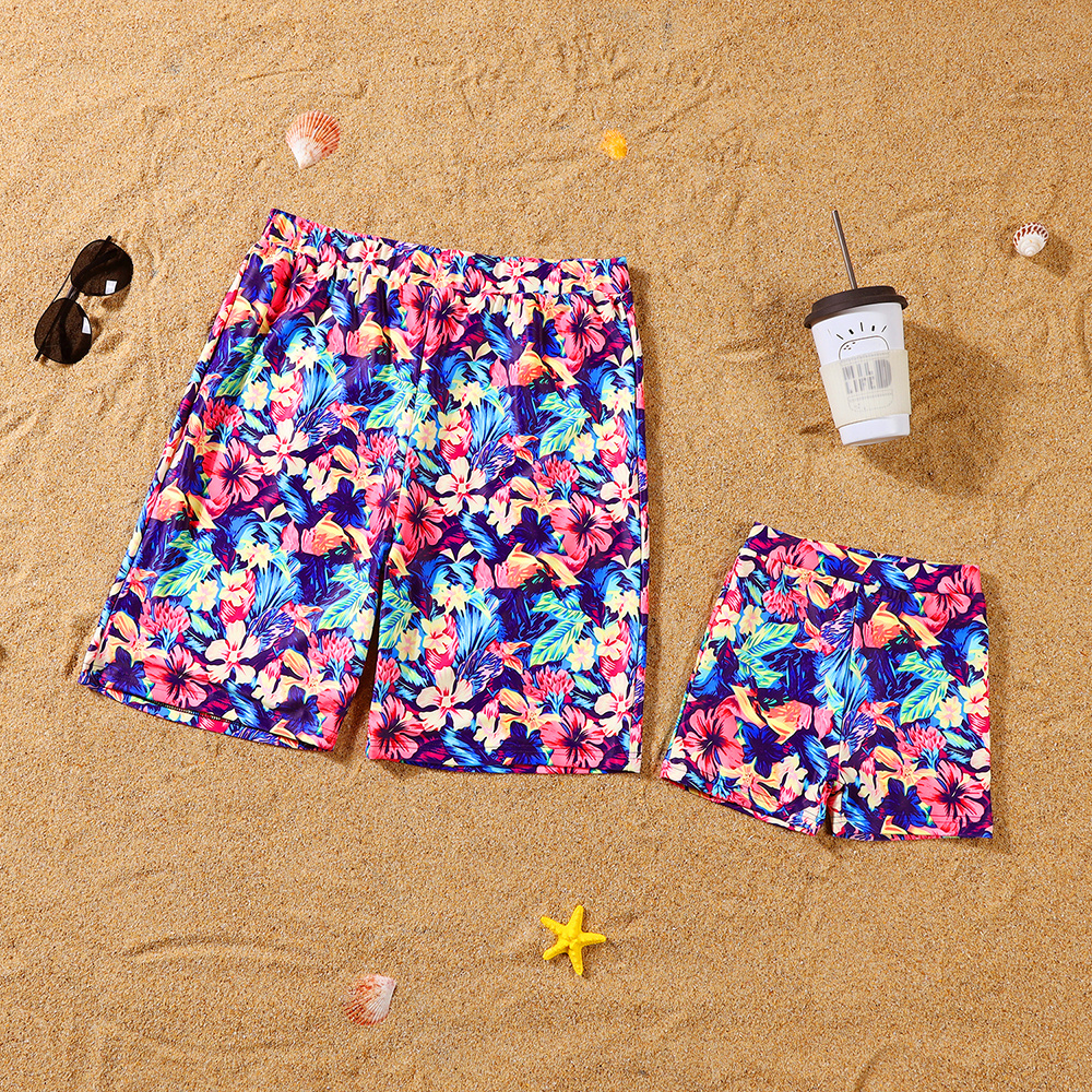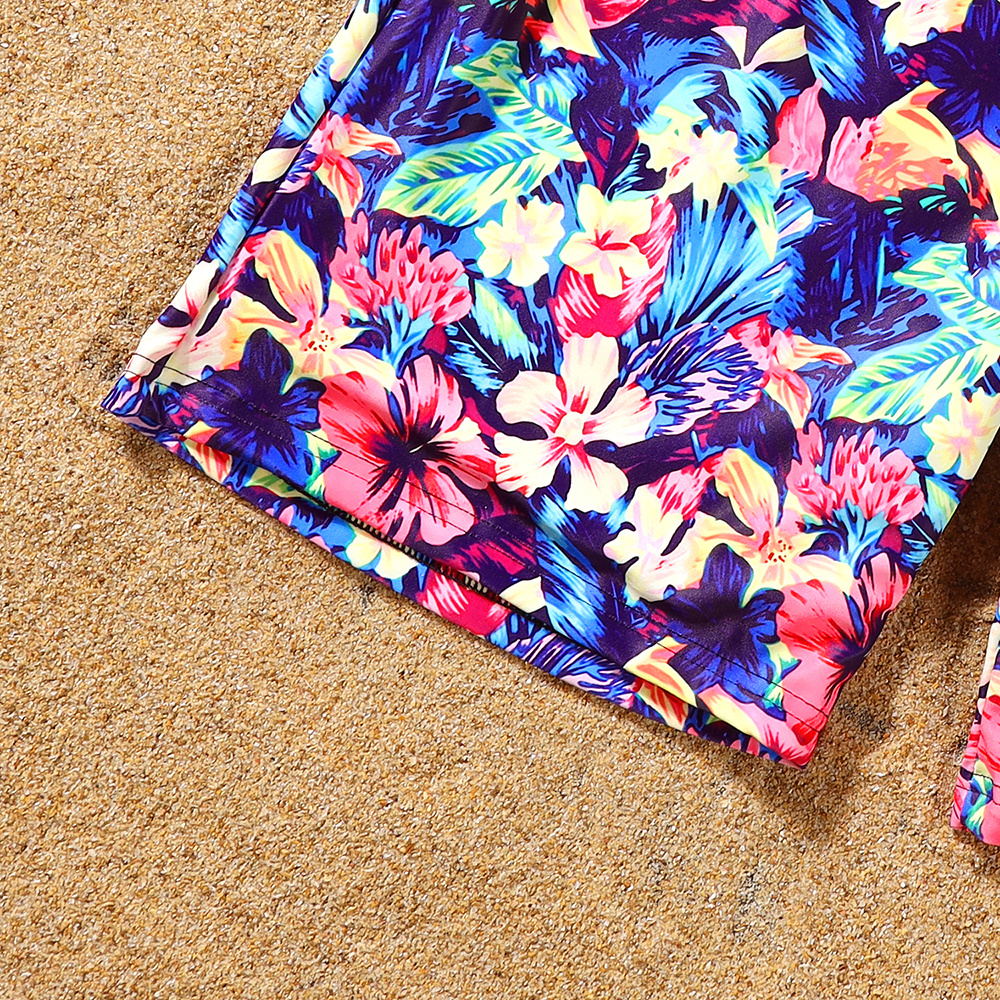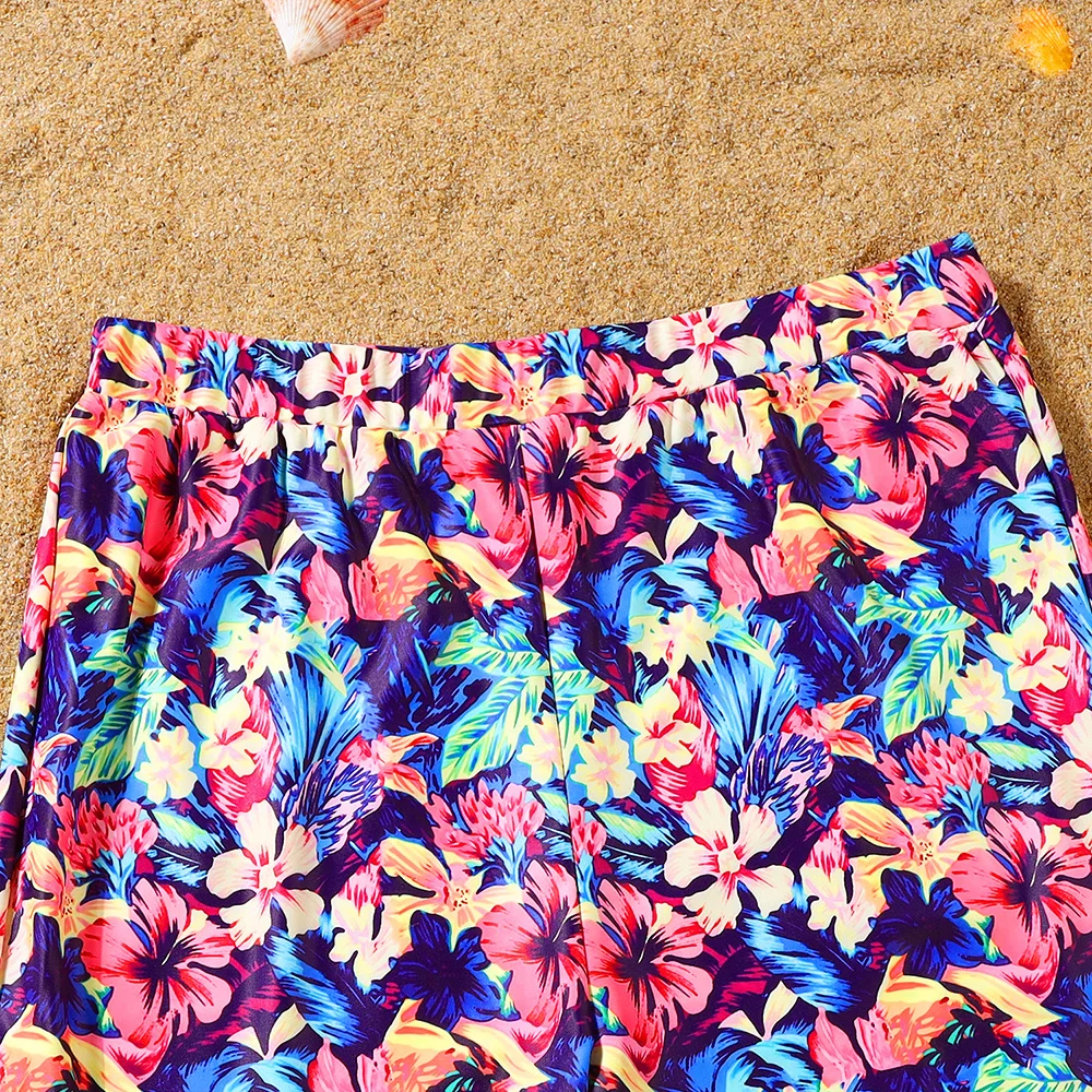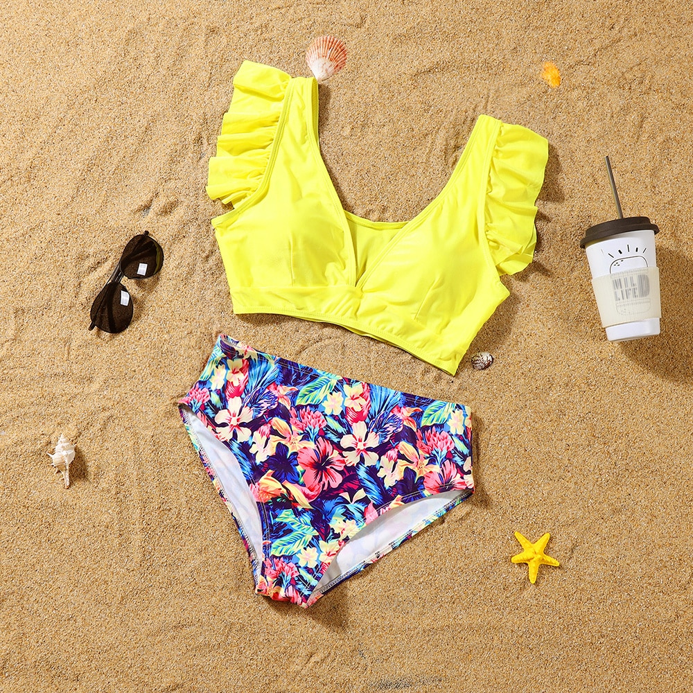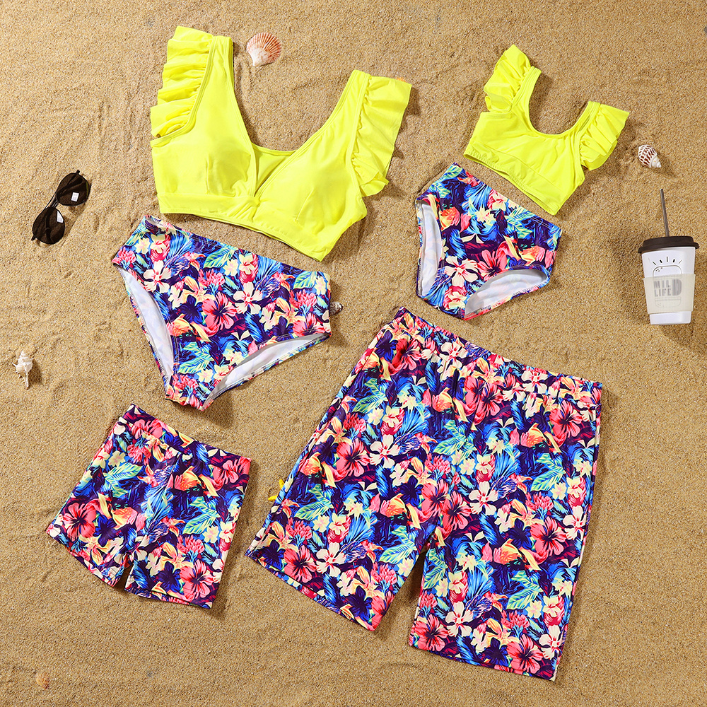 Купальник для детей и взрослых, модный летний топ с оборками на рукавах и шорты, с принтом тропических растений, для отдыха на море
