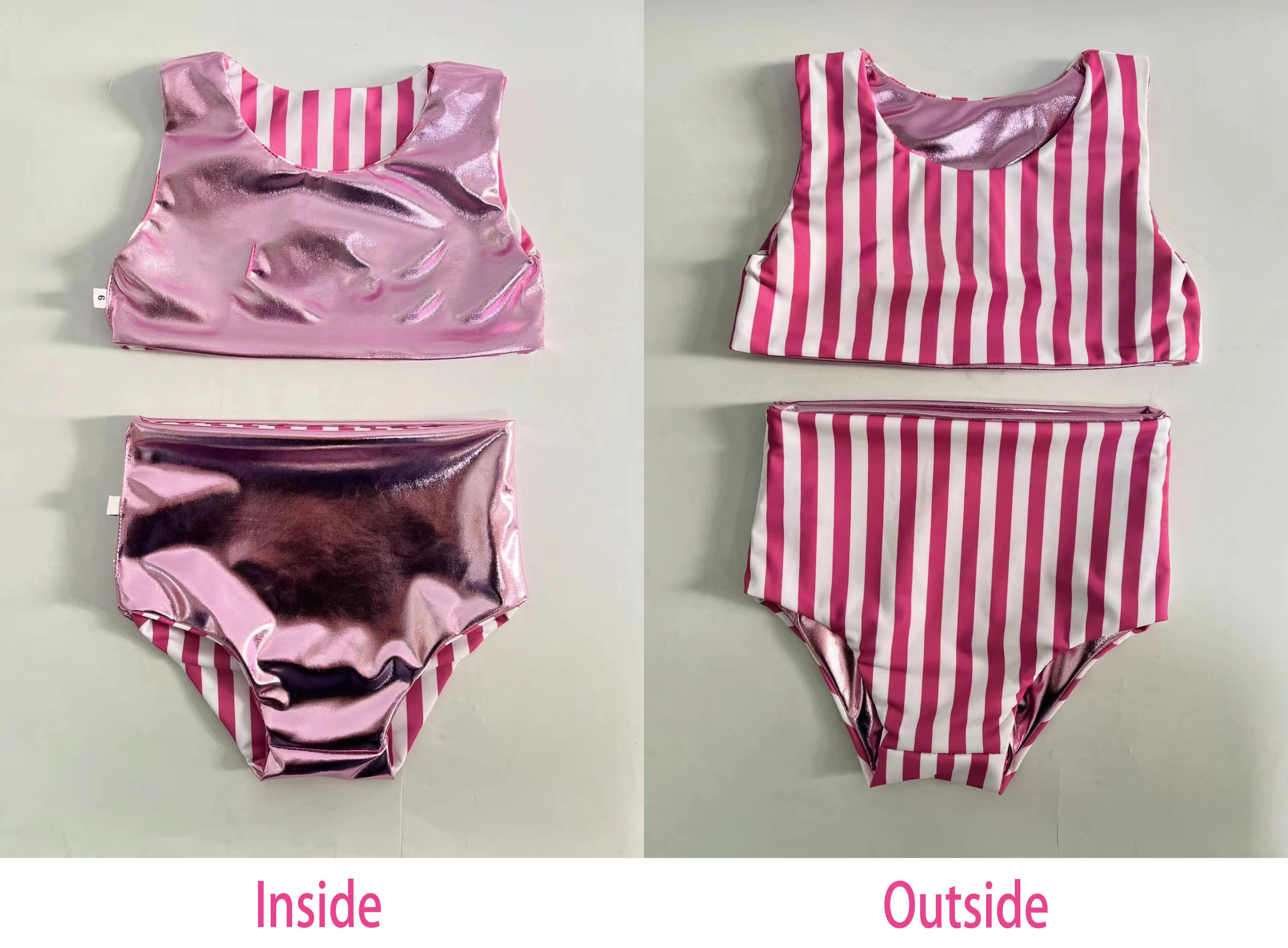 Новые носимые с обеих сторон купальные костюмы купальники для девочек с печатными буквами с обеих сторон пляжная одежда для маленьких девочек одежда для плавания