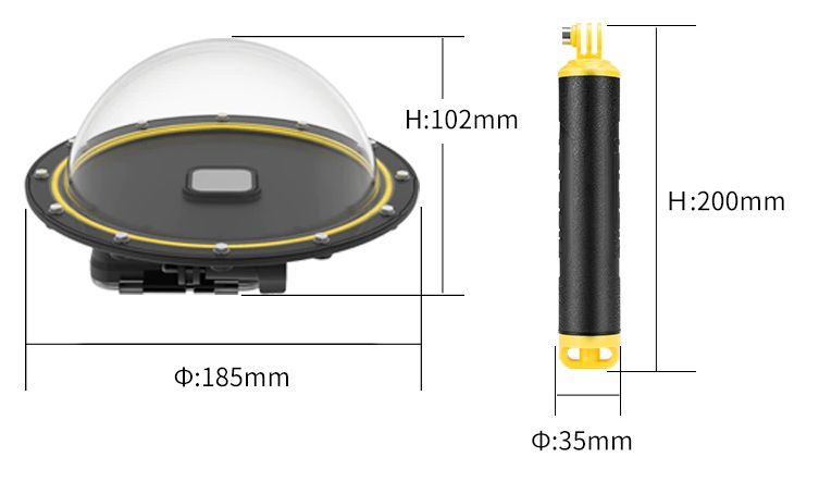 Теоретически производитель заявляет, что купол для GoPro HERO 9 / 10 / 11  Black можно погружать на 30 метров, но лучше не рисковать и использовать его именно снимая на GoPro двухуровневые фото на границе воды и воздуха. Следует помнить, что акриловое стекло купола для гоу про очень прочное, но все же может поцарапаться, поэтому советуем всегда использовать защитный мешок для полусферы.