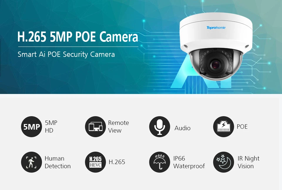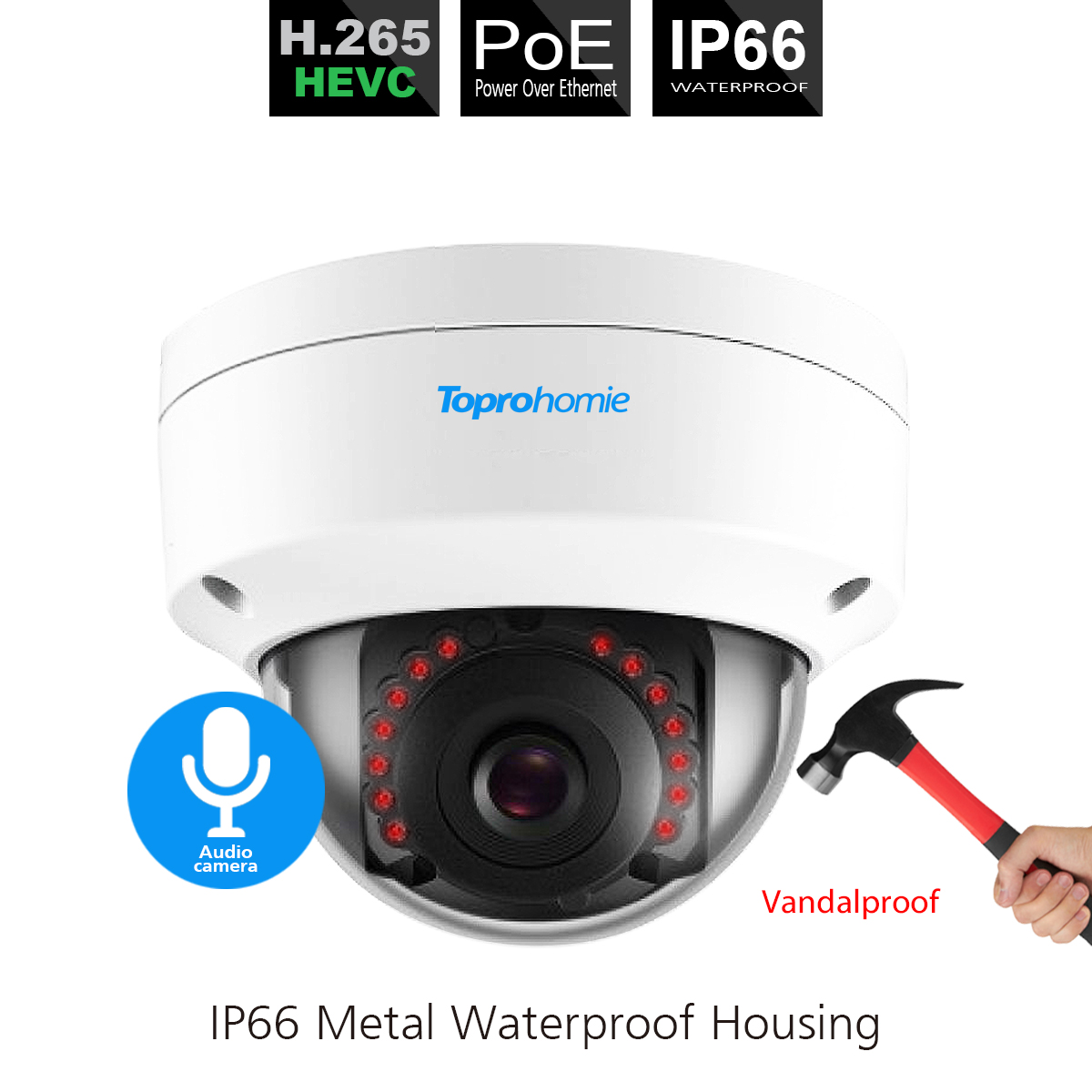 Купольная IP-камера TOPROHOMIE, 5 Мп, HD, 48 В, POE, IP66, антивандальная, наружная, звук камера
