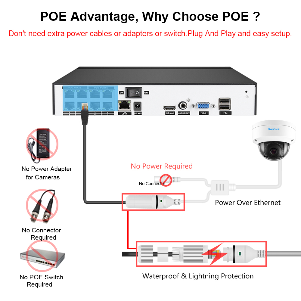 4. Поддержка POE (Power Over Ethernet) с водонепроницаемым кабелем POE.