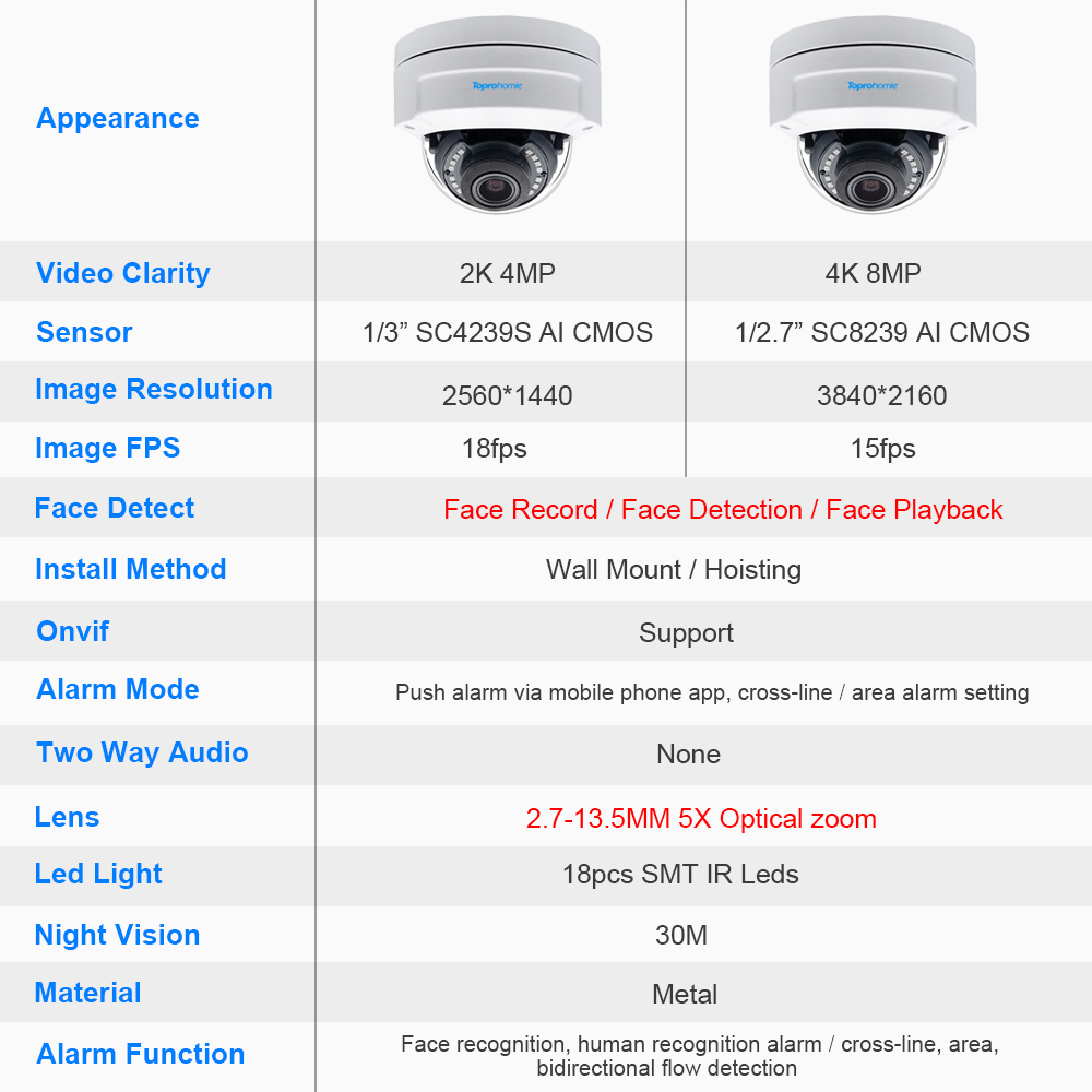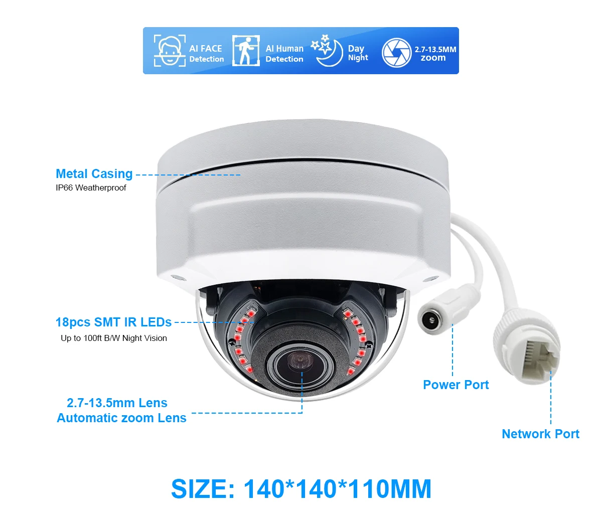 Купольная IP-камера видеонаблюдения, 2,7-13,5 мм, 8 Мп, с 5-кратным оптическим зумом