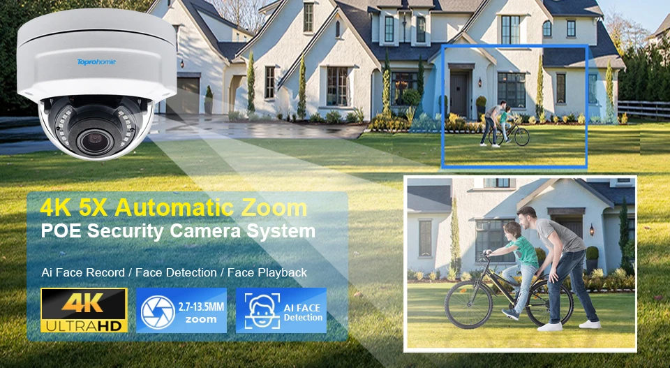 1/2/4 x H.265 4K 8MP / 2K 4MP Водонепроницаемая ip-камера POE с 2,7-13,5 мм 5X автоматическим зум-объективом