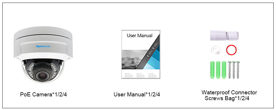 Если у вас нет 48 в PoE инжектор или 48 В POE NVR, вы можете использовать 12 В 1A/2Apower адаптер (не входит в комплект) работает с камерой POE.