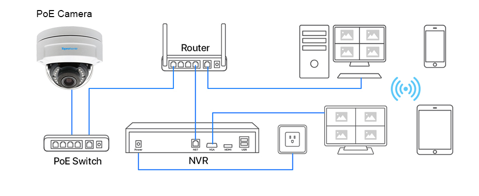 Вам может понадобиться POE NVR, как показано ниже