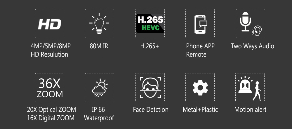 8MP 5.0MP/3.0MP Изображение высокой четкости, супер инфракрасное ночное видение H265 + Видео