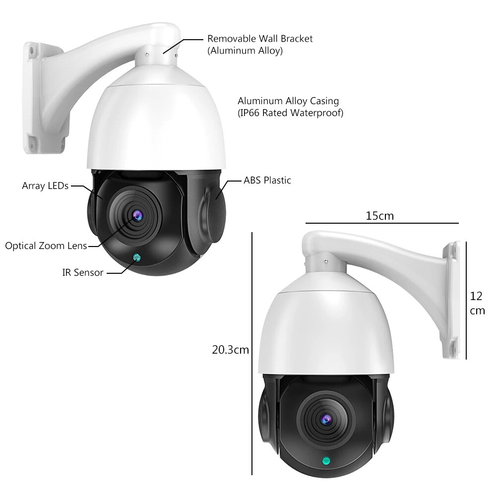 Купольная IP-камера видеонаблюдения PoE IP PTZ 4K, 8 Мп, 5 МП, 36X Zoom IR, 100 м, 360 °
