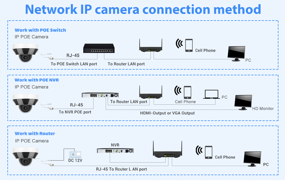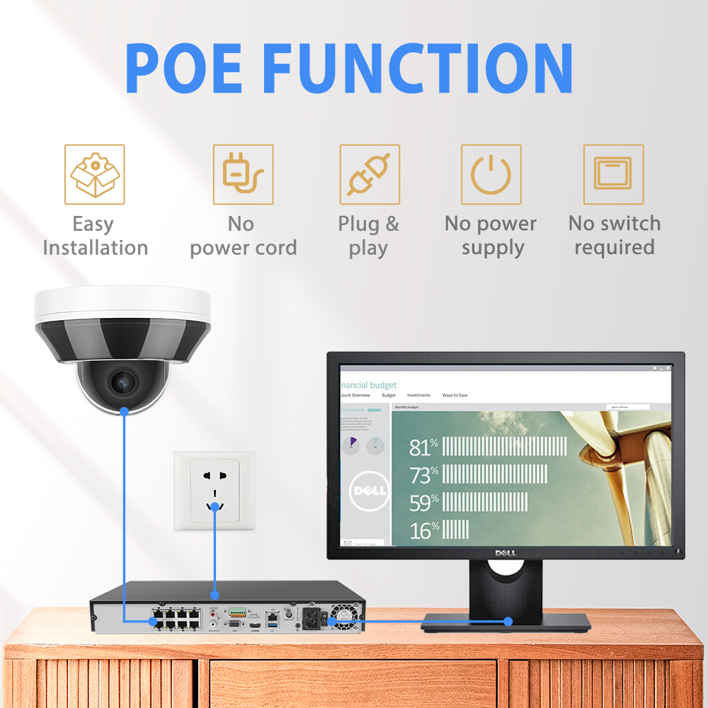 Lt оснащен PoE (Power Over Ethernet) с одним кабелем, соединяемым каждой lP-камерой с сетевым видеорегистратором как для источника питания, так и для передачи видеосигнала.