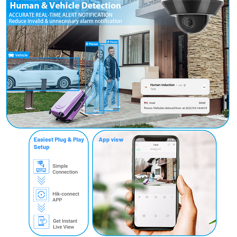 IP66: камера проходит серию строгих испытаний на пыль и впитывание. Он имеет пыленепроницаемую функцию, подходит как для внутреннего, так и для наружного применения, Рабочая температура от-30 ° C до 60 ° C (от-30 ° F до 140 ° F).