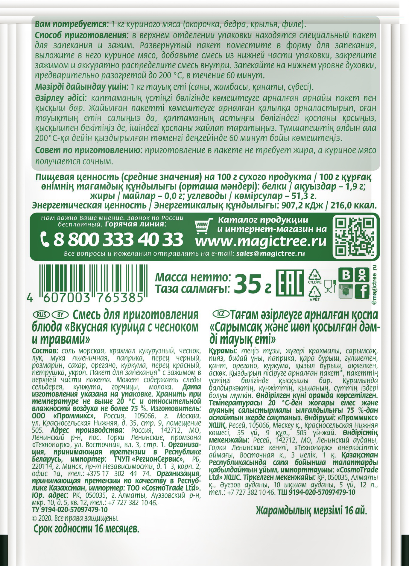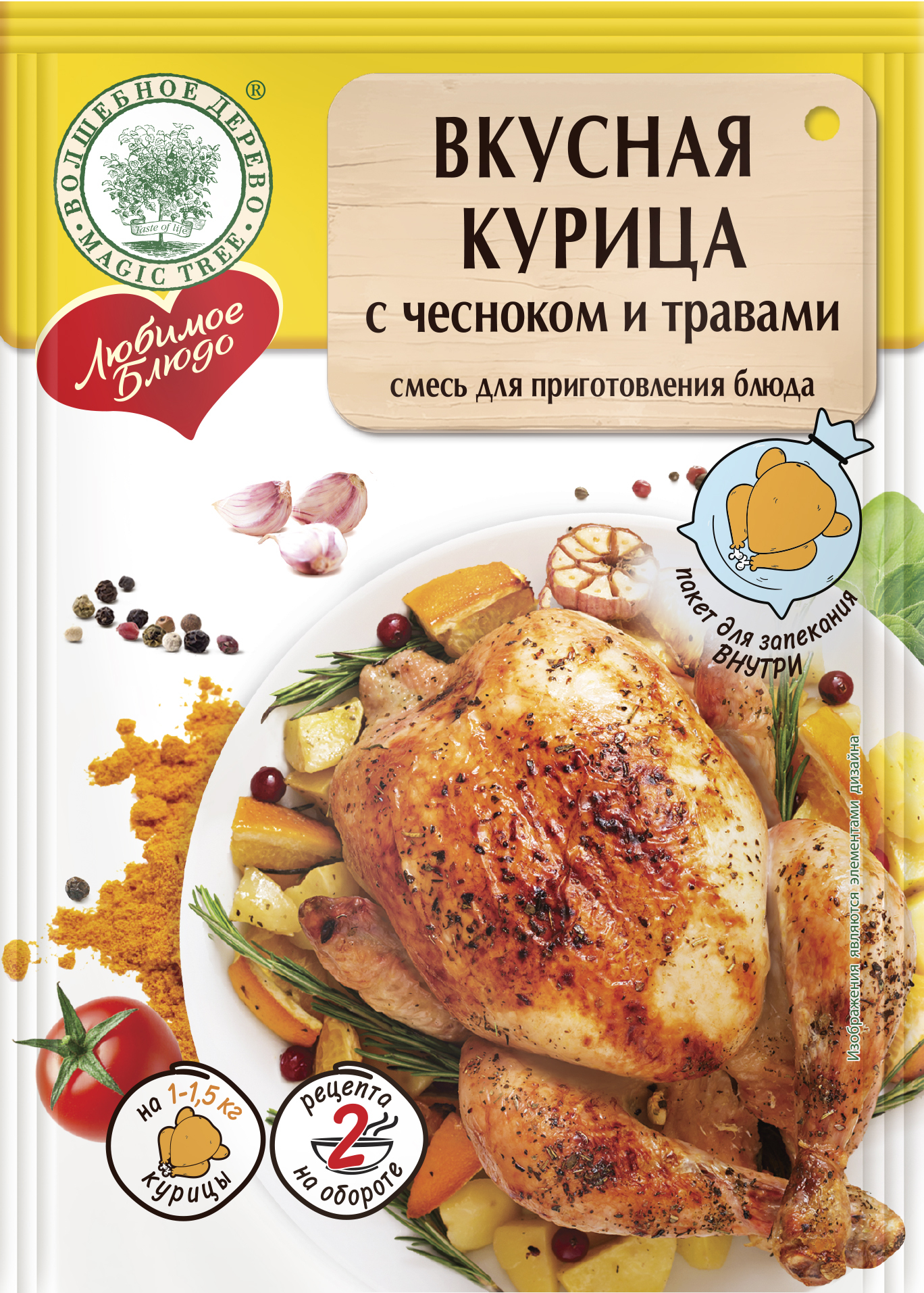 Курица с чесноком и травами, пакет внутри, 35г "Любимое Блюдо" Волшебное дерево