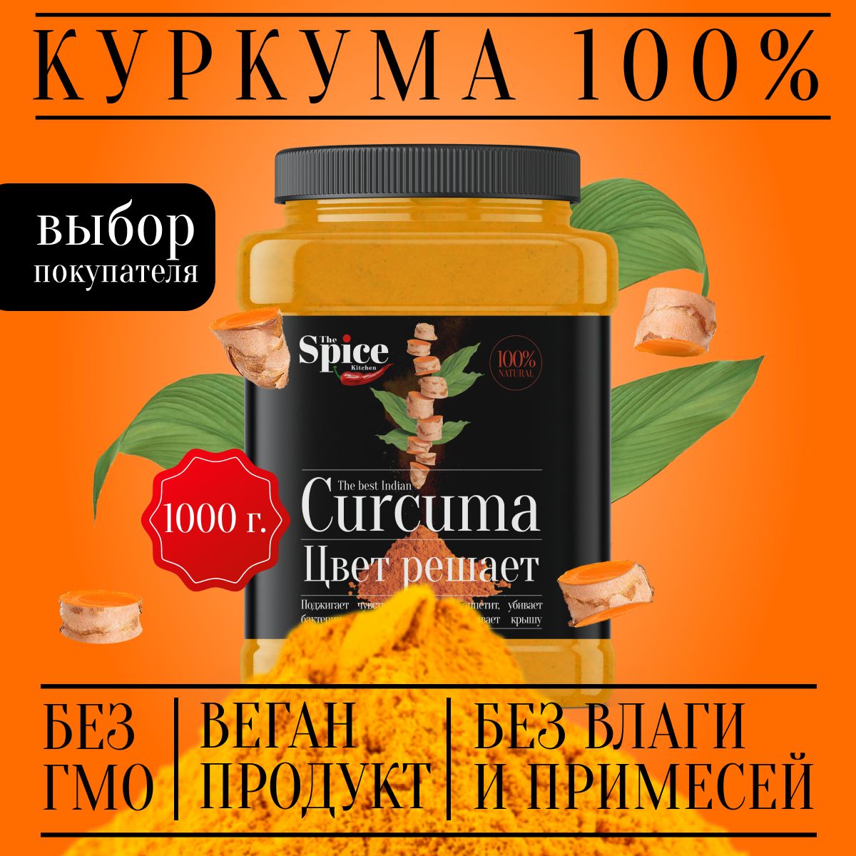 Куркума молотая настоящая 1000 грамм с повышенным содержанием куркумина, приправа для плова курицы
