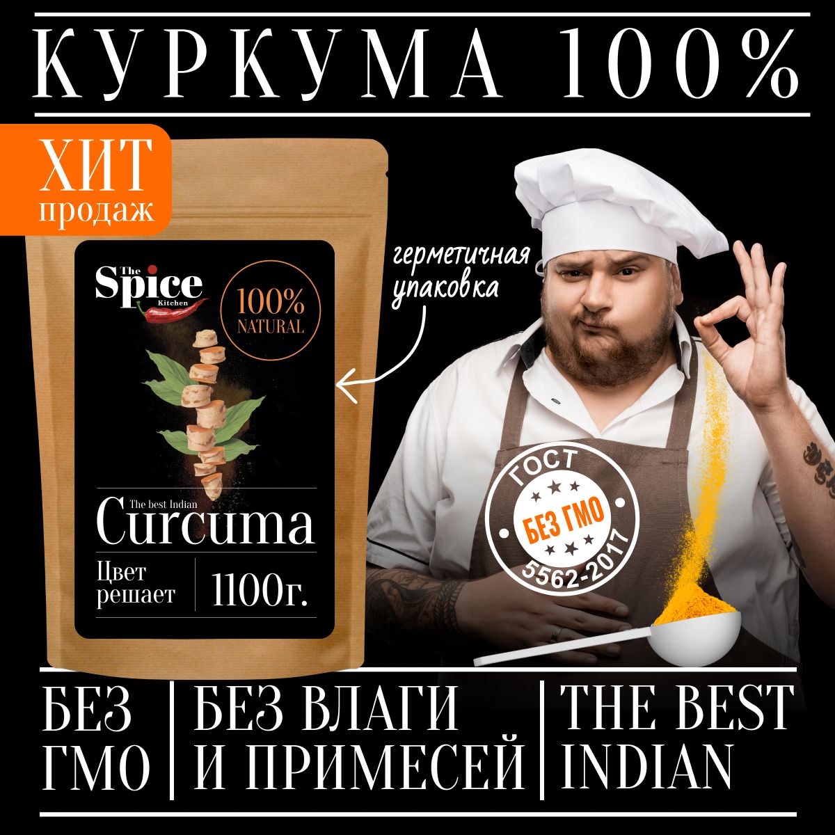 Куркума молотая настоящая 1100 грамм с повышенным содержанием куркумина