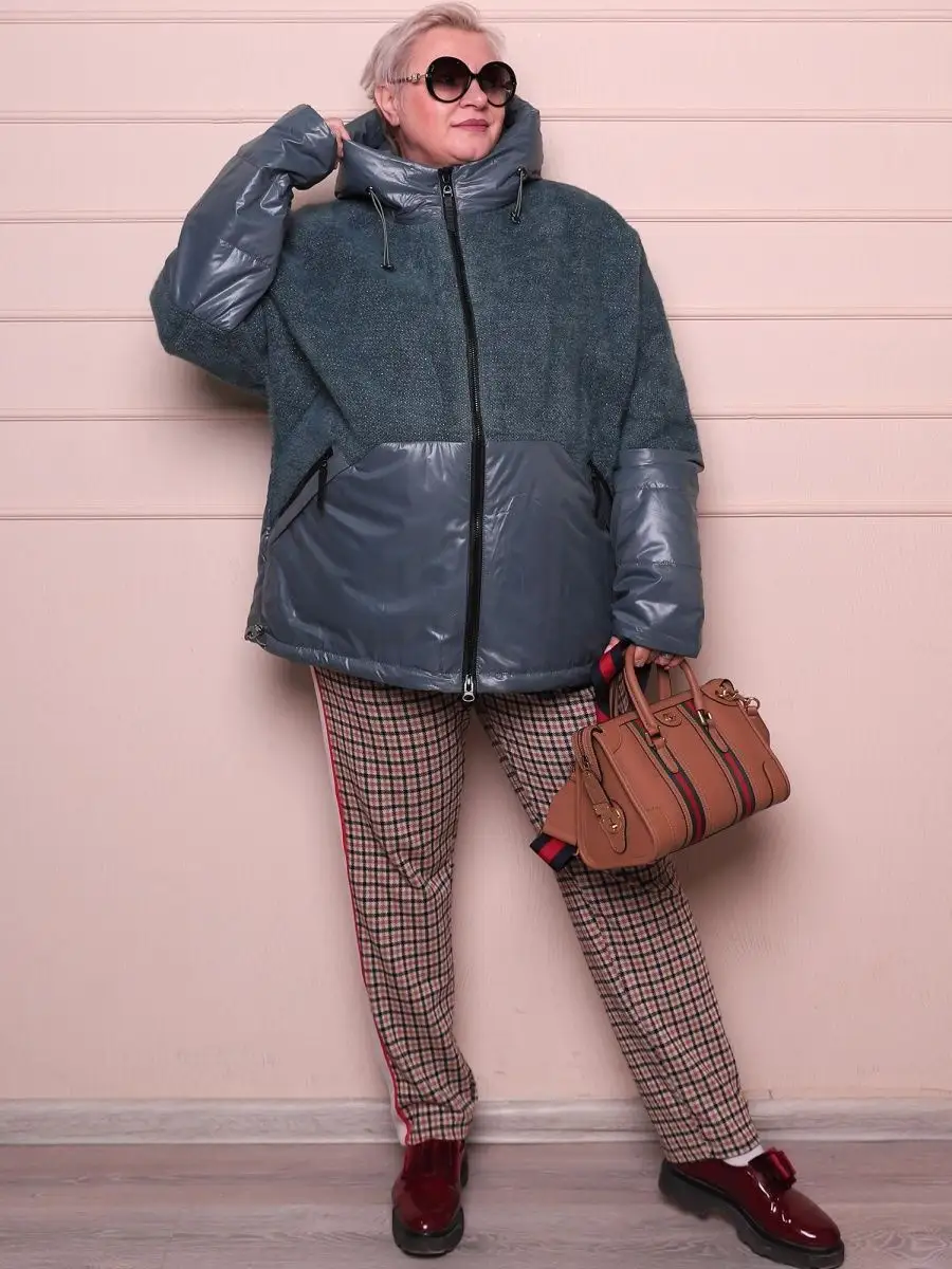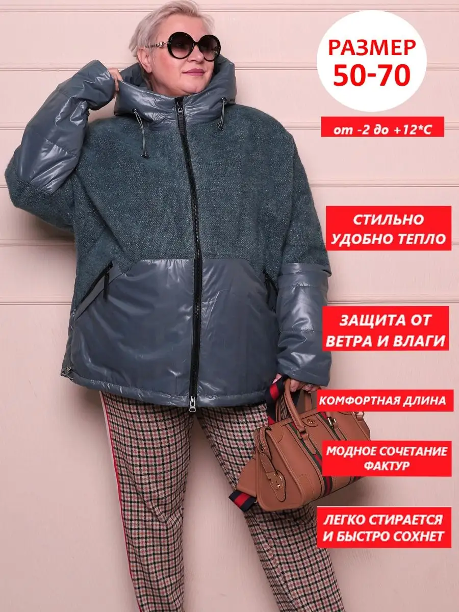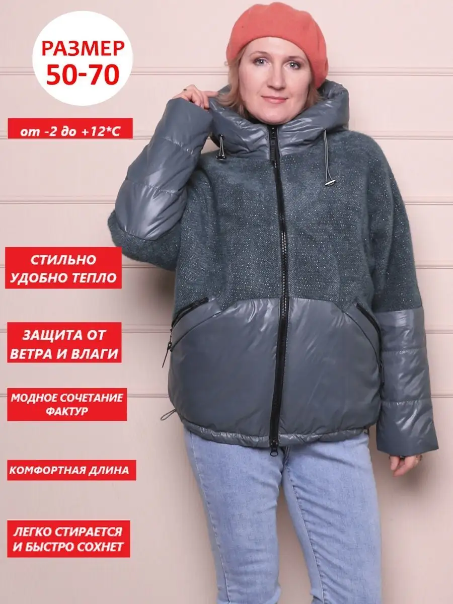 Описание: Комфортная и теплая демисезонная куртка БОЛЬШИХ РАЗМЕРОВ оптимальной длины выполнена из ветрозащитной и водоотталкивающей ткани и отлично защитит в межсезонье (осенний, весенний сезон). Рассчитанный температурный диапазон для носки от -2 до +12 С. Стеганая куртка с модной комбинацией мягкого плюшевого трикотажа с нитью люрекса и плащевой ткани, выделит Вас из толпы и подойдет для молодой девушки или женщины, независимо от возраста. Куртка больших размеров оверсайз легкая и теплая, из плотной плащевой ткани с утеплителем, не продувается и не промокает. Данная модель утепленного пальто для женщин разработана для полных и пышных форм, подходит под любой стиль. Трендовый и как всегда актуальный свободный прямой крой осенне-весенней куртки позволяет двигаться свободно. Утеплитель-современный синтепон (полотном), не сбивается в комки, не дает парникового эффекта, хорошо стирается и сохнет за ночь. Куртка дополнена глубоким несъемным капюшоном с регулировкой объема стопперами. В стеганной куртке два прорезных кармана на молнии,а также есть внутренний карман. По низу изделия предусмотрена утяжка со стопперами. Двухзамковая молния с внутренней ветрозащитной планкой. Рукава комфортной ширины, покроя летучая мышь, не стесняют движений, что очень удобно для автоледи. Низ рукава можно носить с отворотом (до 9 см). В готовом изделии размера 60 : длина по спинке- 72 см, полуобхват груди 70 см, полуобхват бедер 71 см, длина рукава 69 см. Стильная куртка женская весна демисезонная с капюшоном большие размеры оверсайз короткая весенняя подходит для высоких и для невысоких, подростков, девушек и женщин. Пальто теплое короткое подойдет для беременных и будущих мам. Верхняя женская одежда больших размеров на межсезонье бренда L.A.G. удобная стильная и практичная.